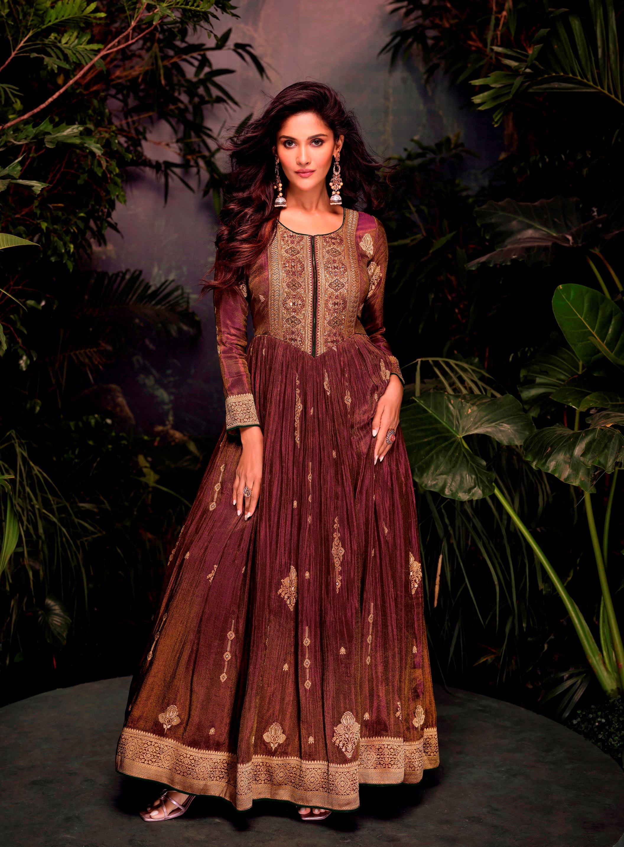 Featuring heavy embroidery work on the bodice and dupatta, this Anarkali suit showcases exquisite craftsmanship and intricate design. The warm brown hue exudes timeless sophistication, making it an excellent choice for formal events, festive occasions, or special gatherings where you want to stand out effortlessly.
