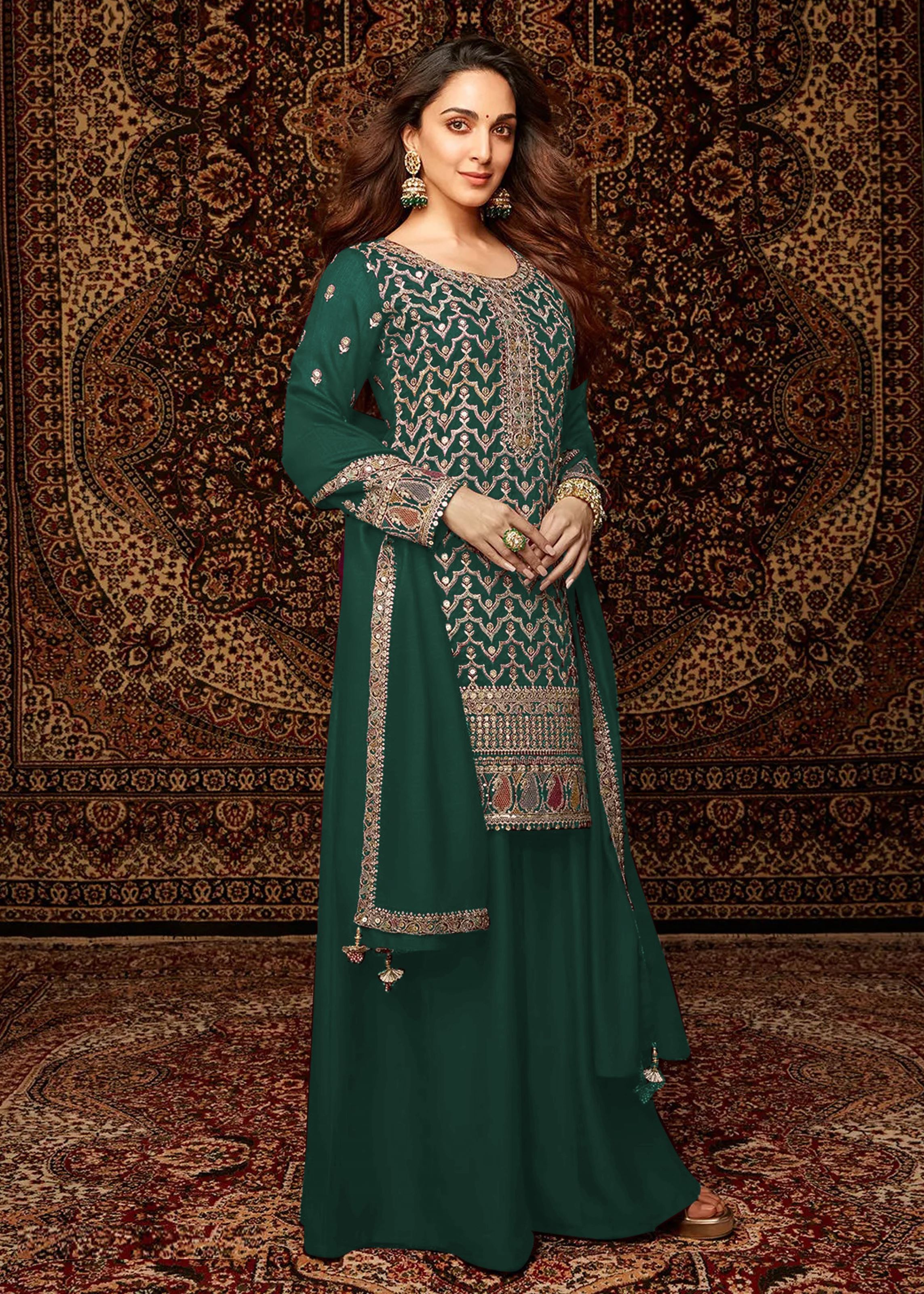 Green Heavy Designer Suit With Heavy Embroidery Work