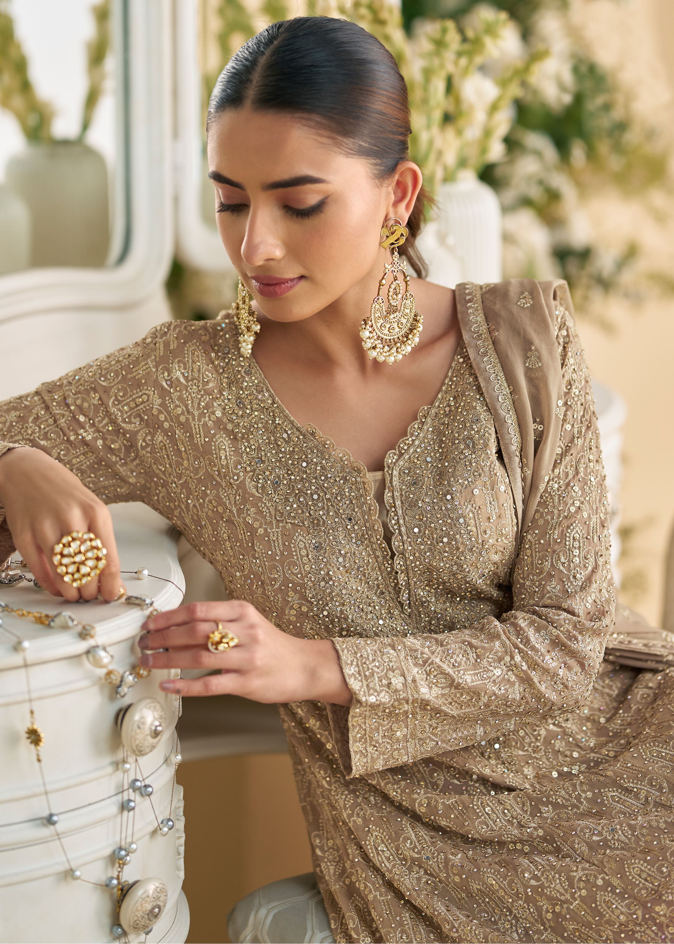 Grey Heavy Designer Suit With Heavy Embroidery Work