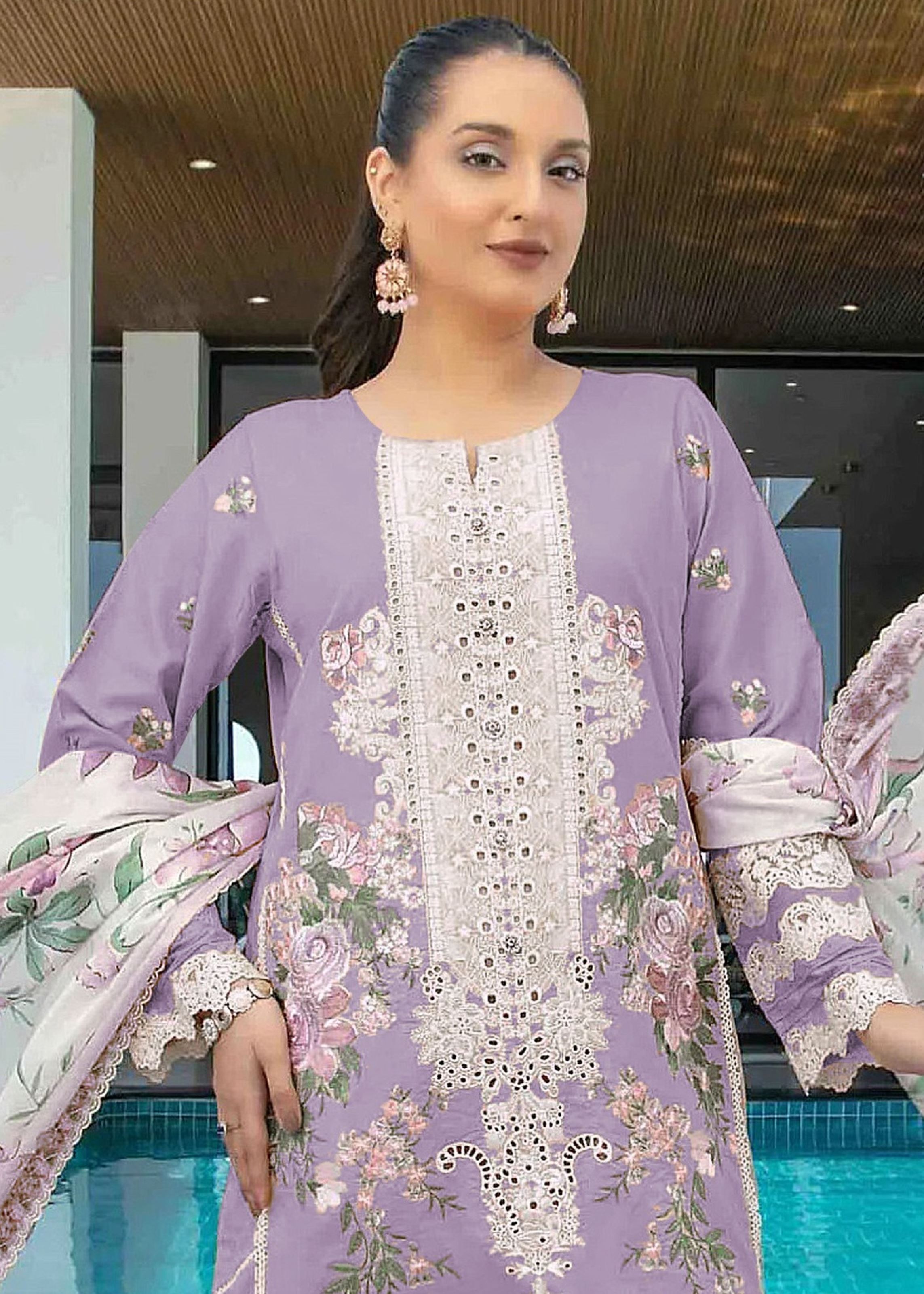 Step into effortless elegance with this Lavender Heavy Designer Suit, a refreshing and graceful choice for festive mornings, casual functions, or intimate celebrations. Crafted from premium cotton fabric, the 43-inch kameez offers breathable comfort and an elegant fall, ideal for all-day wear. The soothing lavender tone, combined with heavy embroidery work, brings a subtle sophistication to the outfit—making it perfect for those who appreciate refined ethnic charm.