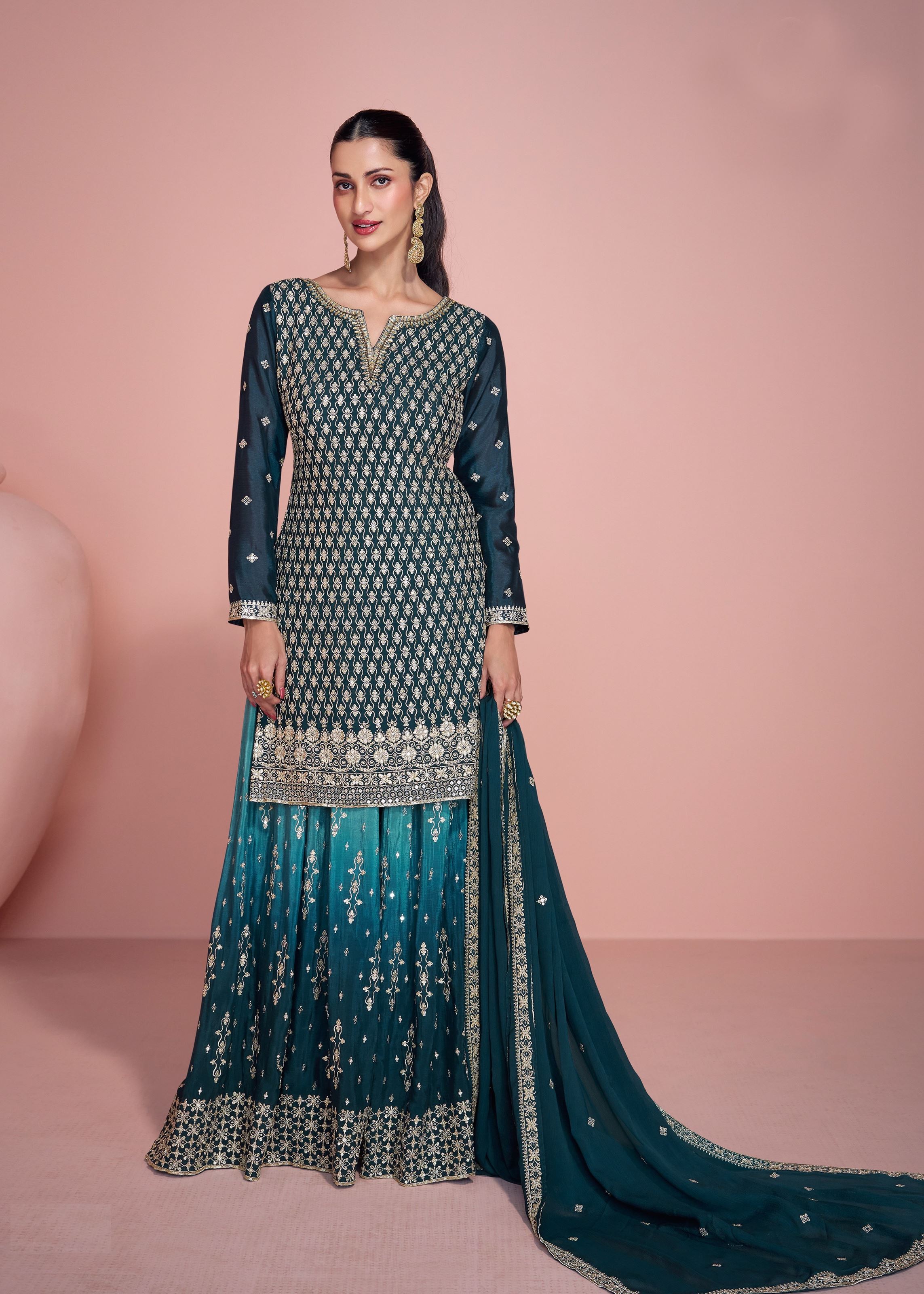 Aethnofit Fashions presents this designer palazzo suit as part of its exclusive collection of elegant and affordable suits. Expertly tailored with $1 stitching, it promises a perfect fit and lasting durability. Reflecting the latest Indian styles for women in 2025, this suit is a must-have for your ethnic wardrobe.