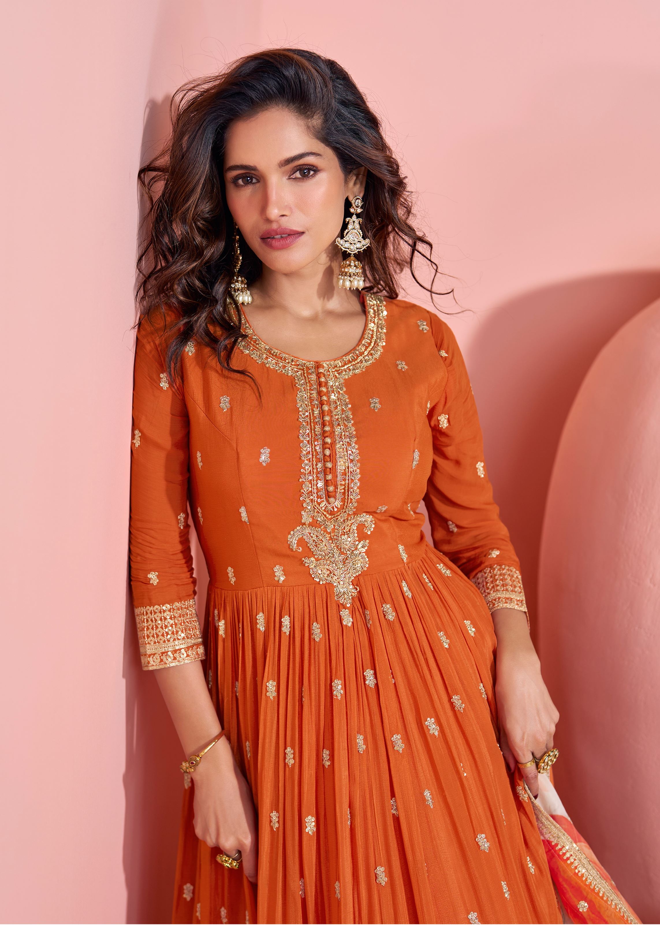 Orange Heavy Designer Suit With Heavy Embroidery Work