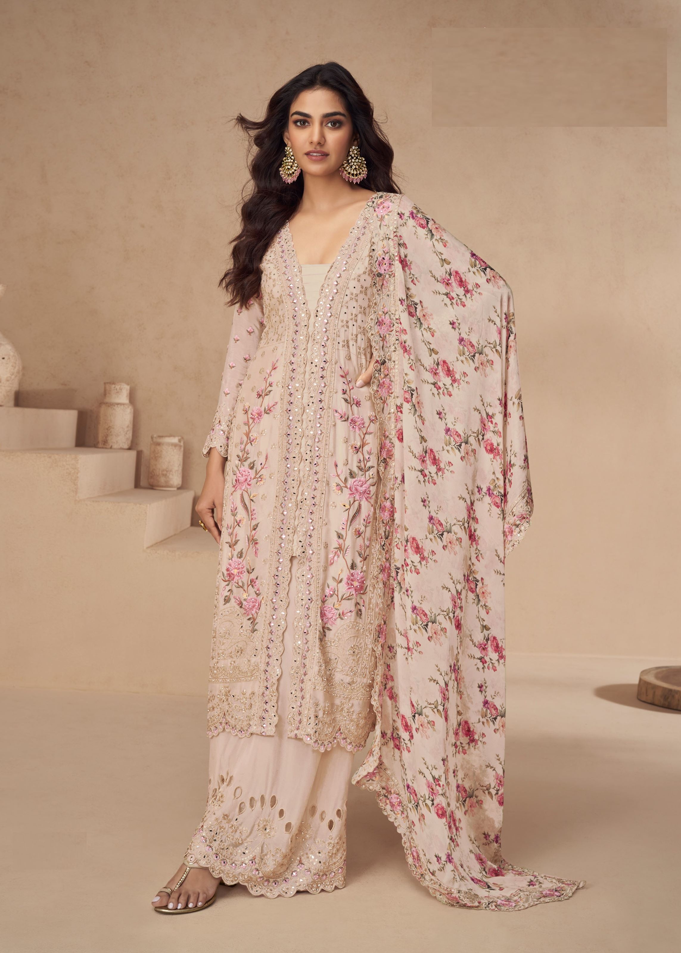 Peach Heavy Designer Suit With Heavy Embroidery Work