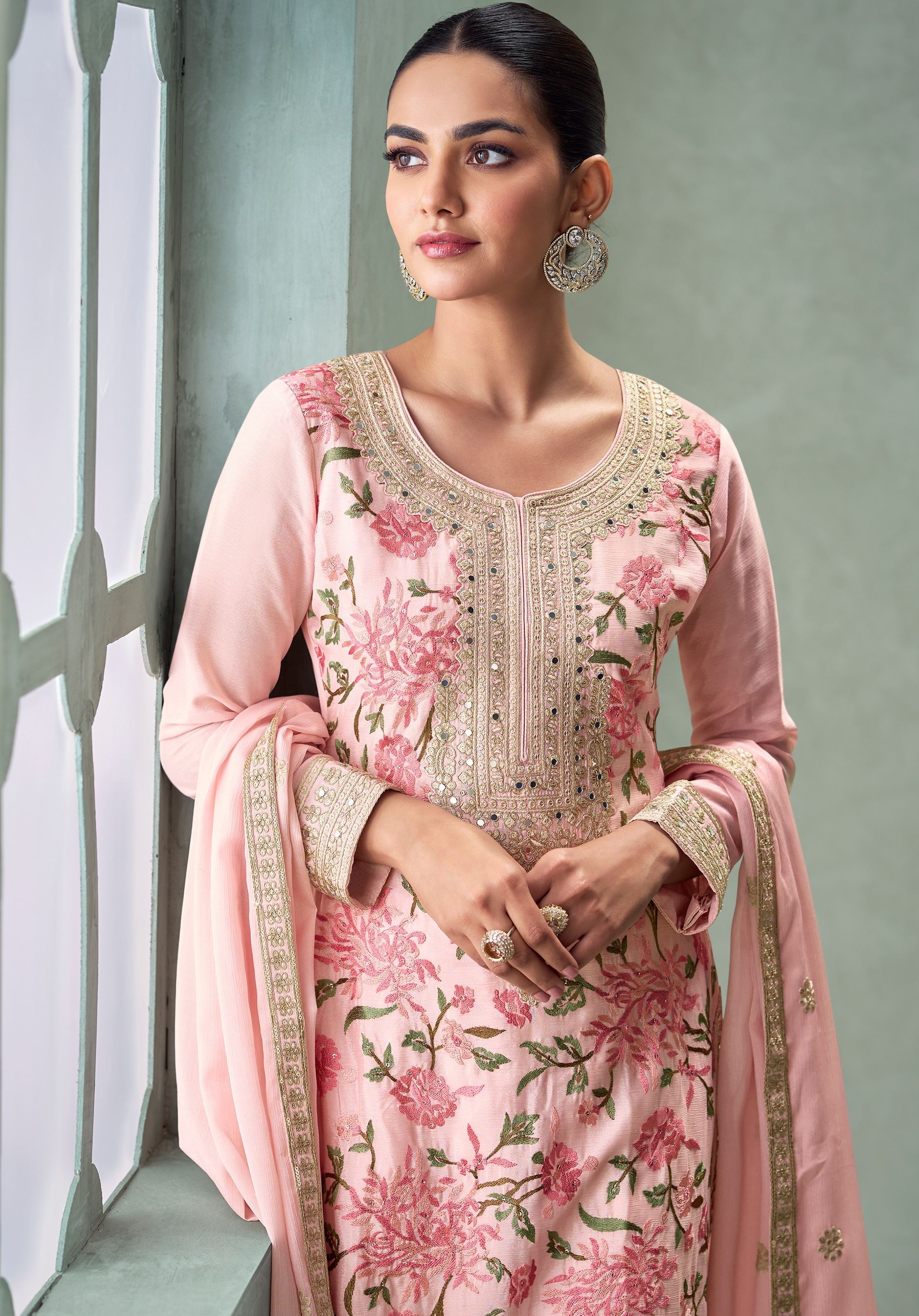 Pink Heavy Designer Suit With Heavy Embroidery Work