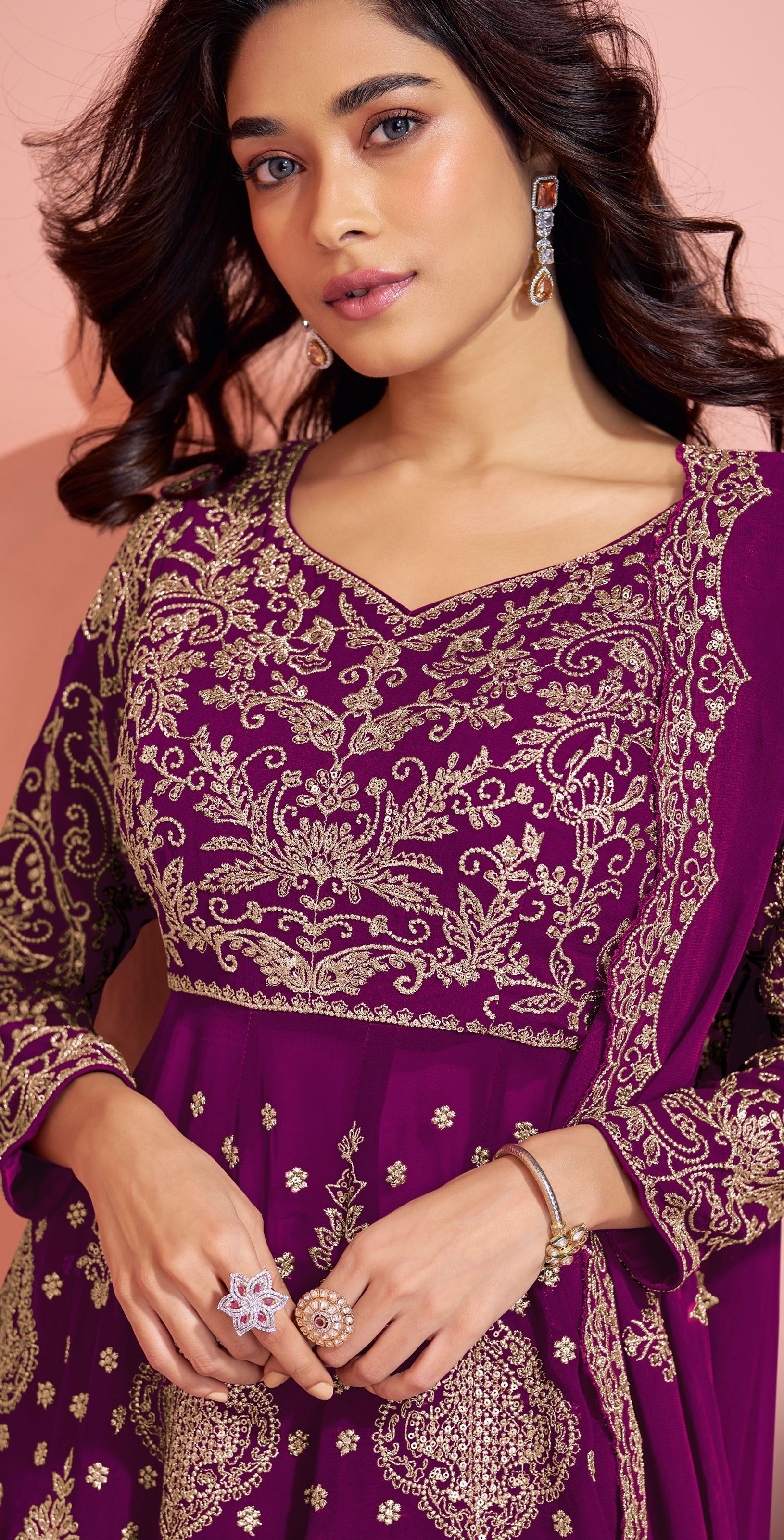 Purple Heavy Designer Suit With Heavy Embroidery Work
