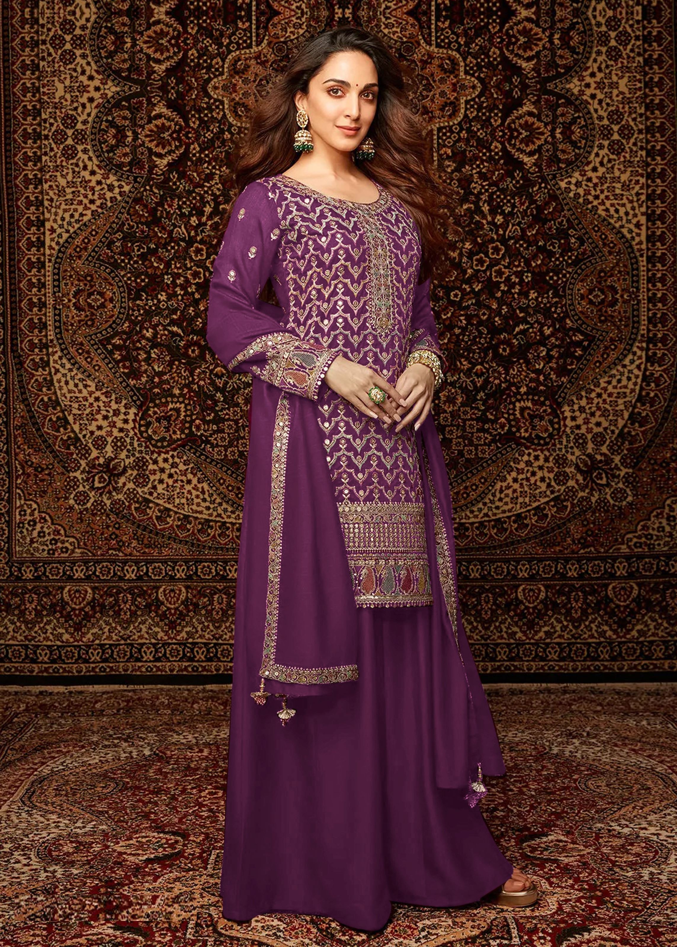 Purple Heavy Designer Suit With Heavy Embroidery Work