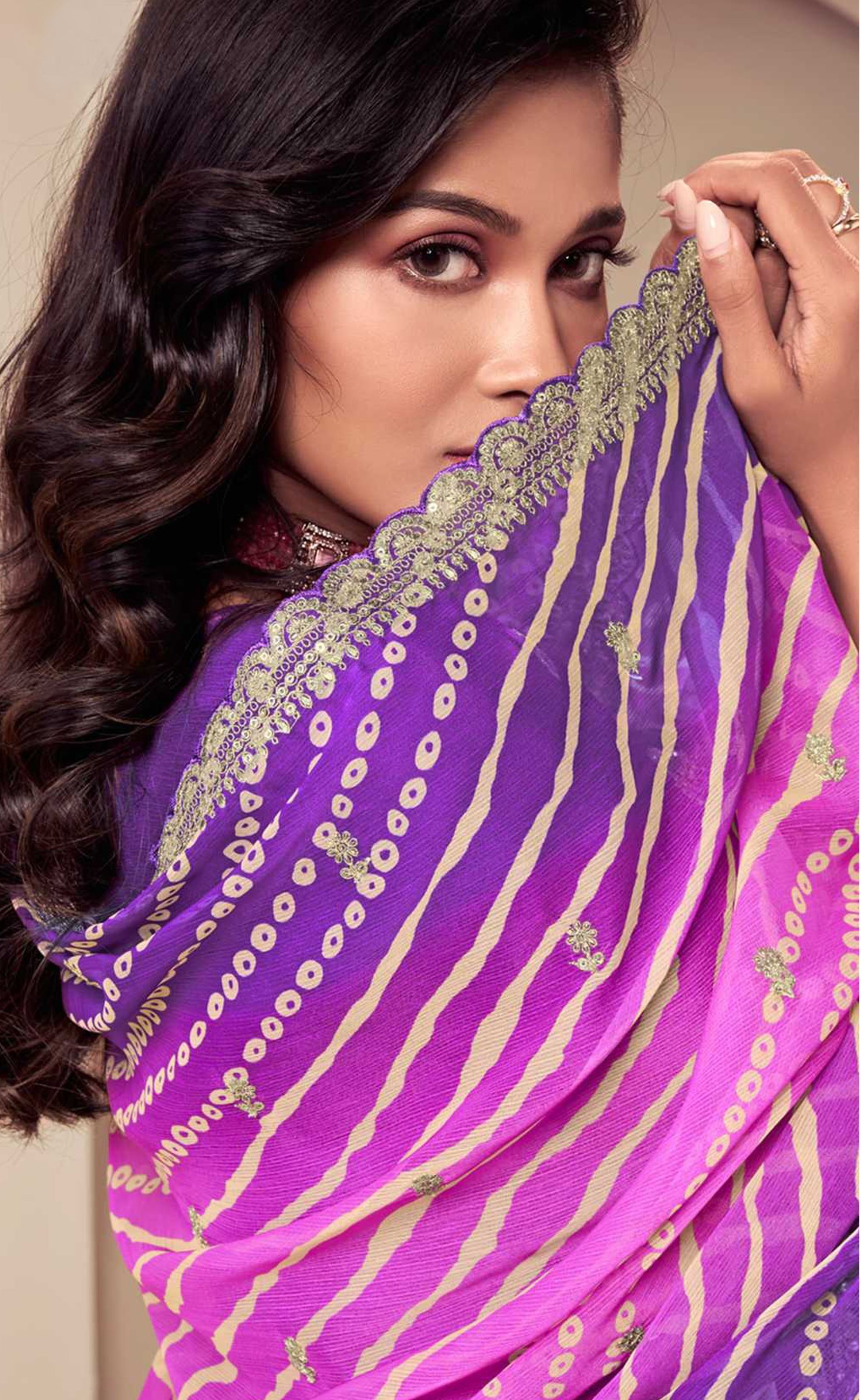 Adding to the grandeur is the lightweight chiffon dupatta, which complements the outfit in the same majestic purple shade. Whether draped traditionally or styled in a modern way, the dupatta adds fluidity and charm to the overall look.