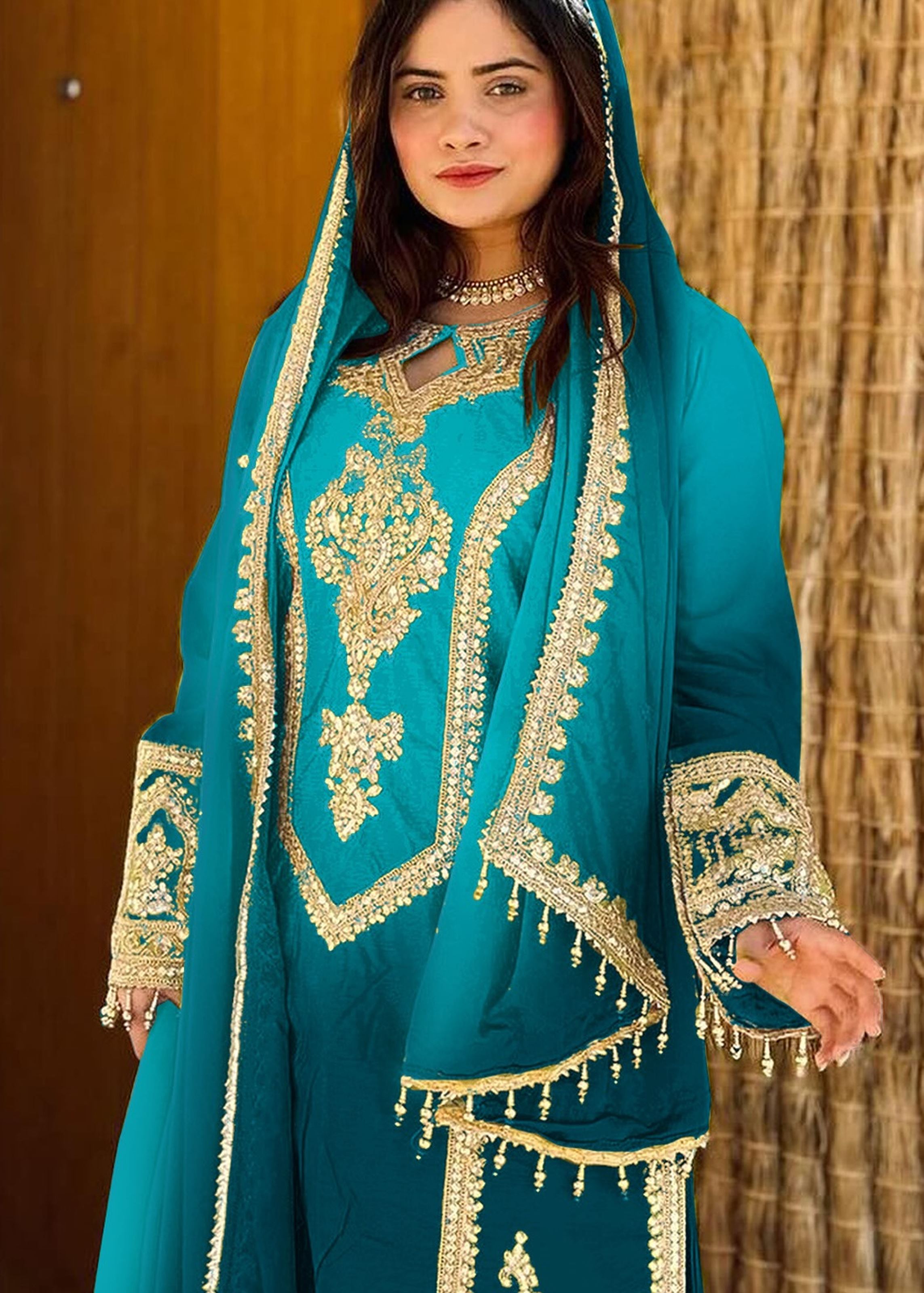 Sky Blue Heavy Designer Suit With Heavy Embroidery Work