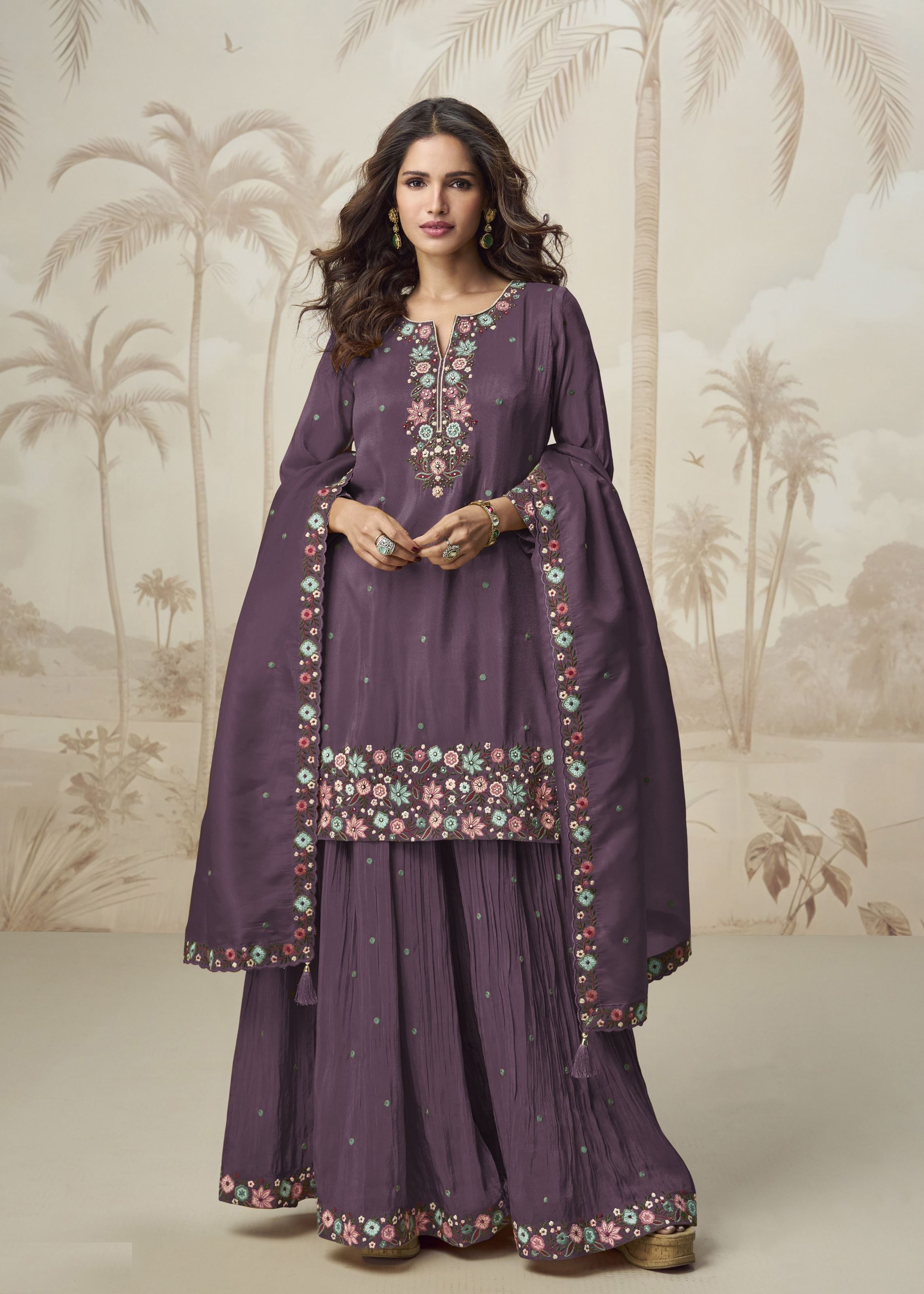 Indulge in deep, luxurious tones with this Wine Heavy Designer Suit from Aethnofit Fashions — a sophisticated ensemble that radiates grace and grandeur. Crafted from high-quality Roman Simar fabric, this three-piece set features a 37-inch kameez, matching bottom, and a dupatta, all in an elegant wine shade. The heavy embroidery work adds richness and texture, making it a perfect choice for festive celebrations, wedding events, or grand evening functions.