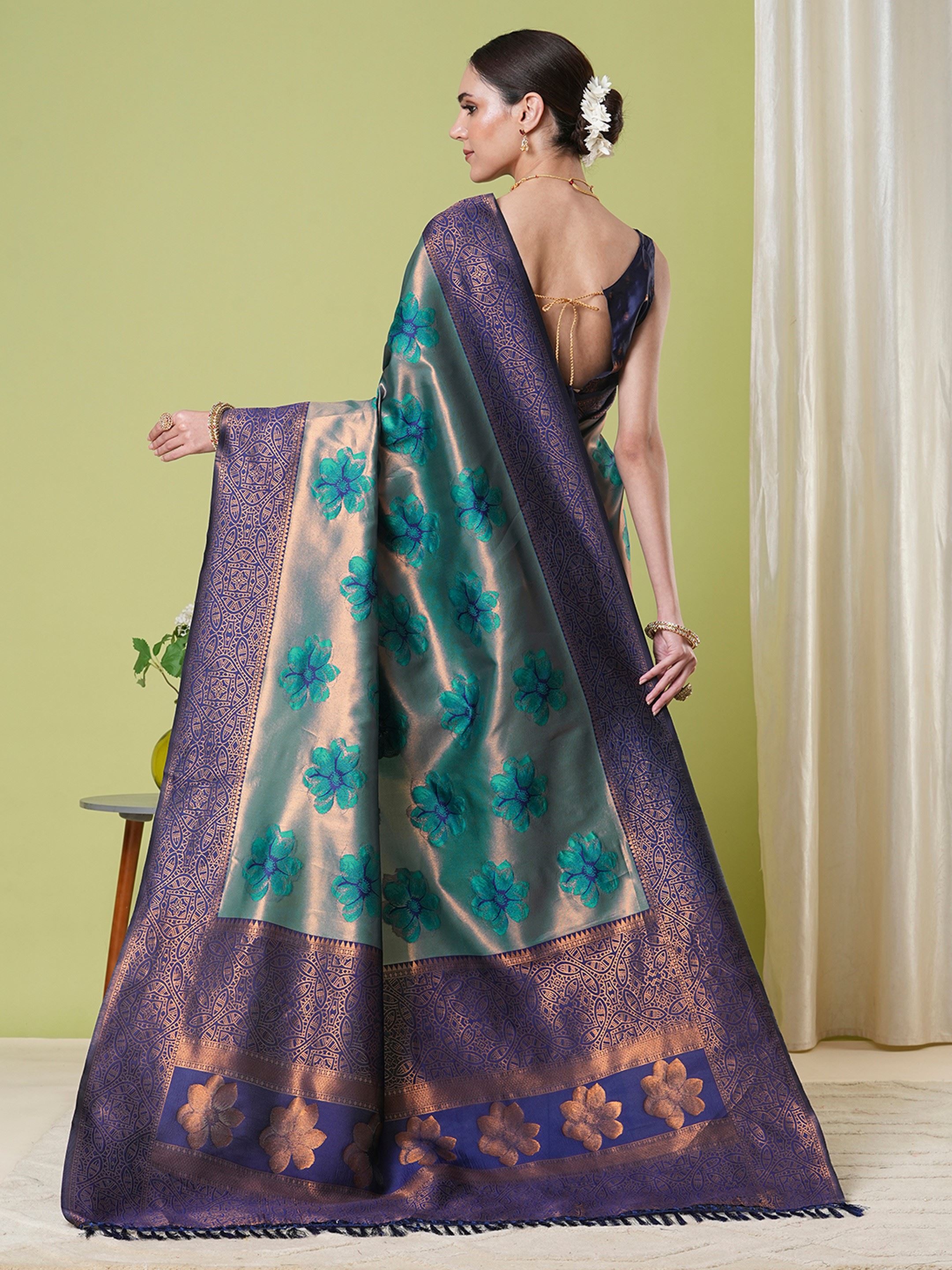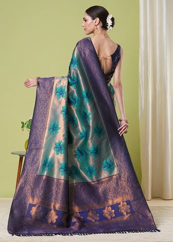 Aqua Banarasi Silk Woven Jacquard Designer Partywear Saree