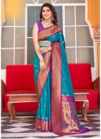 Aqua Blue Colour Paithni Silk Saree with Jacquard Woven work