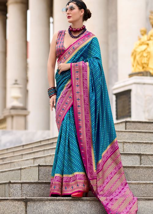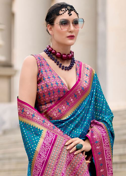 Aqua Blue Pure Soft Banarasi Silk Saree With Jacquard Woven Work