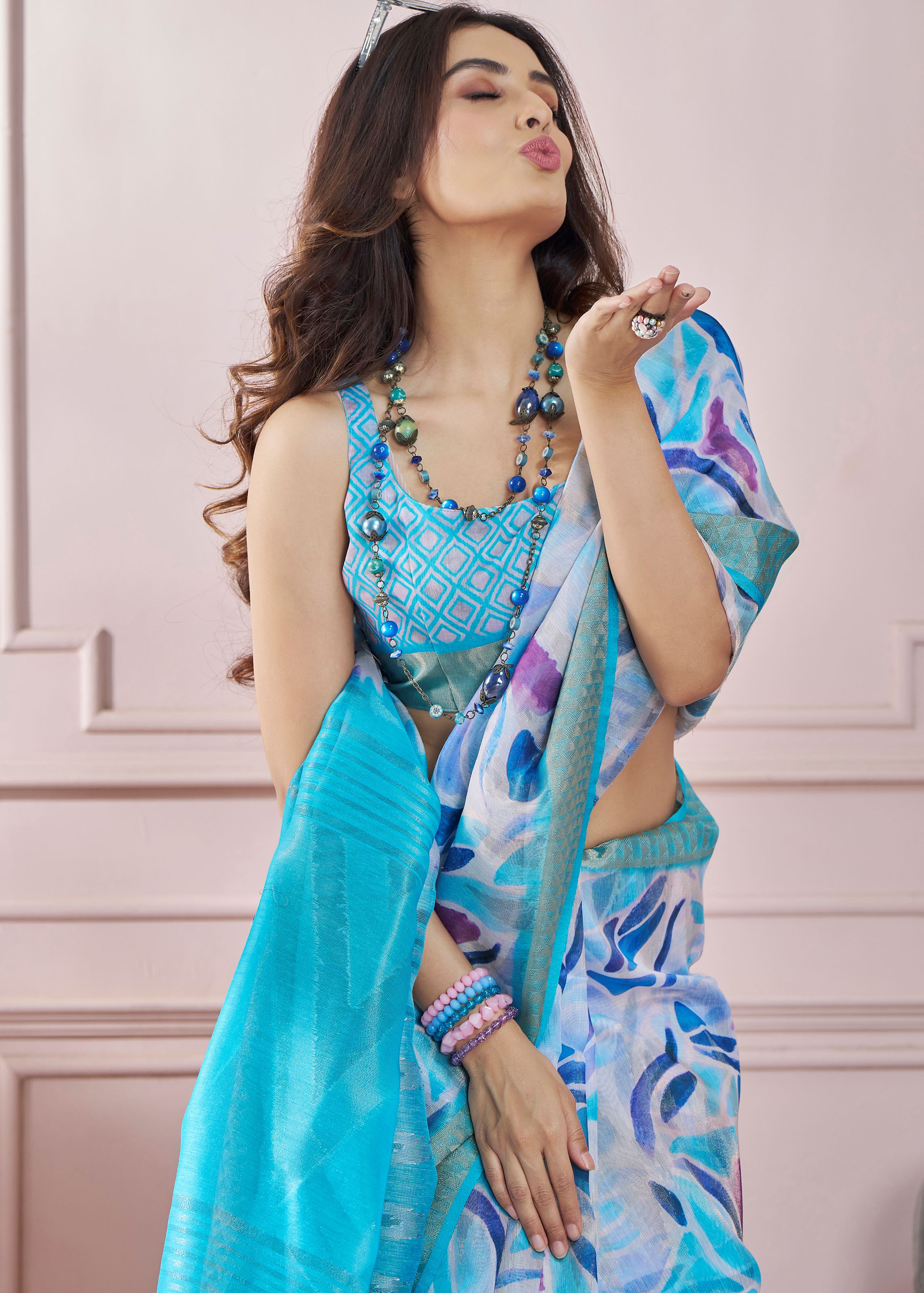 | Blouse Colour | Aqua Blue |