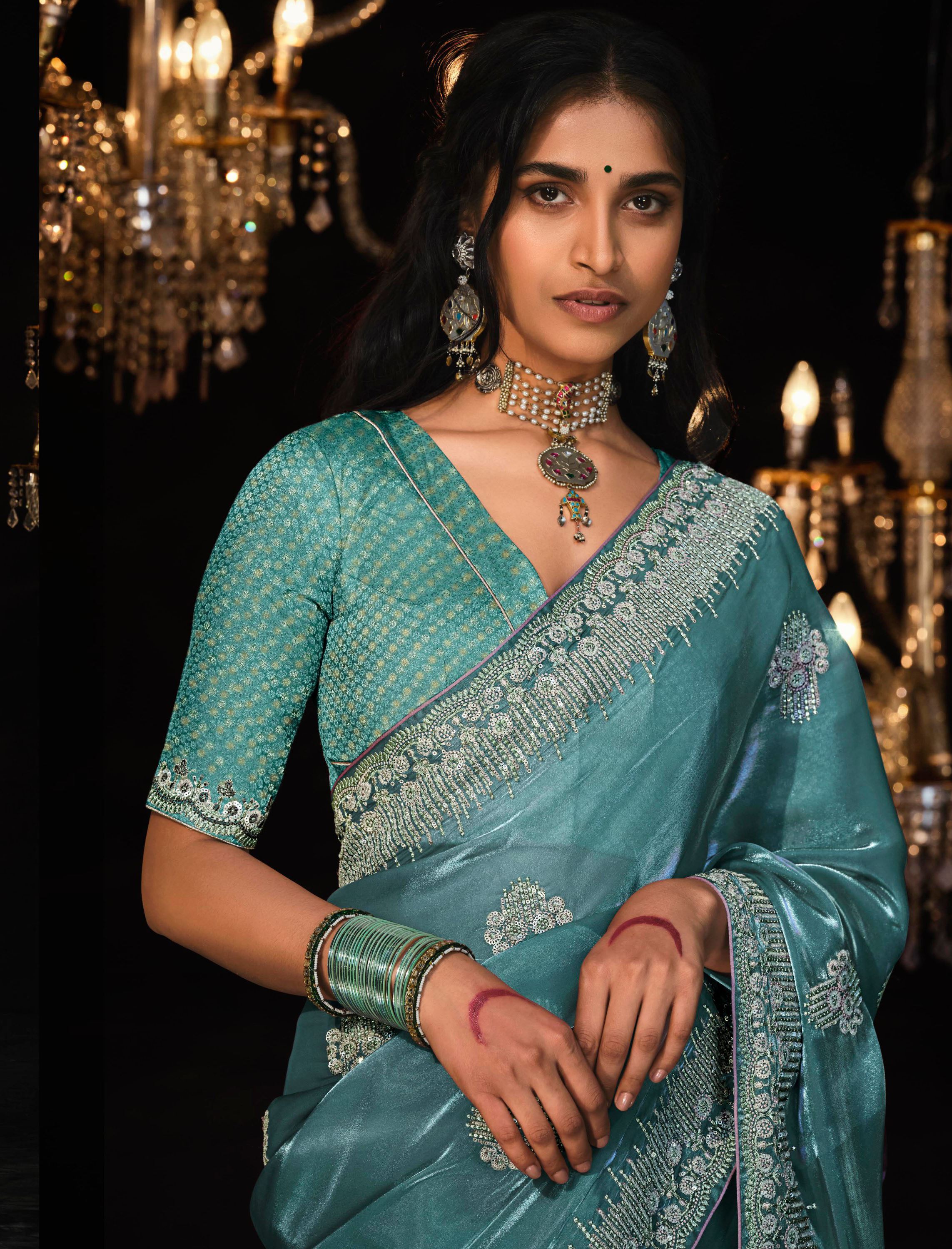 | Blouse Colour | Aqua Blue |