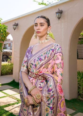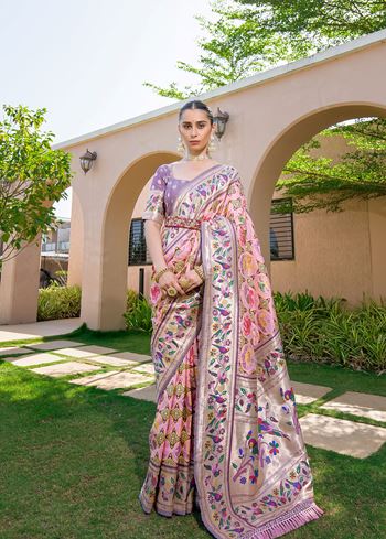 Baby Pink Paithani Silk Saree with Meenakari Zari and Pallu