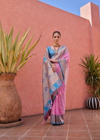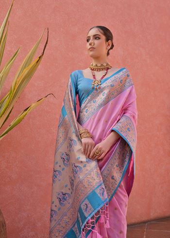 Baby Pink Paithani Silk Saree with Paithani Pallu and Zari Butti