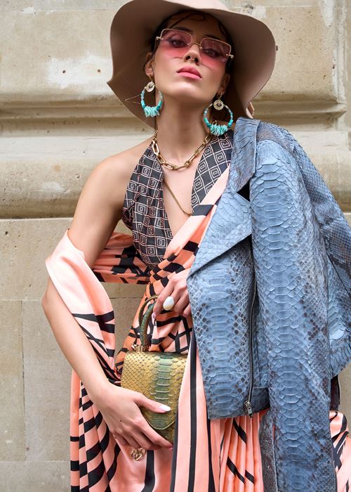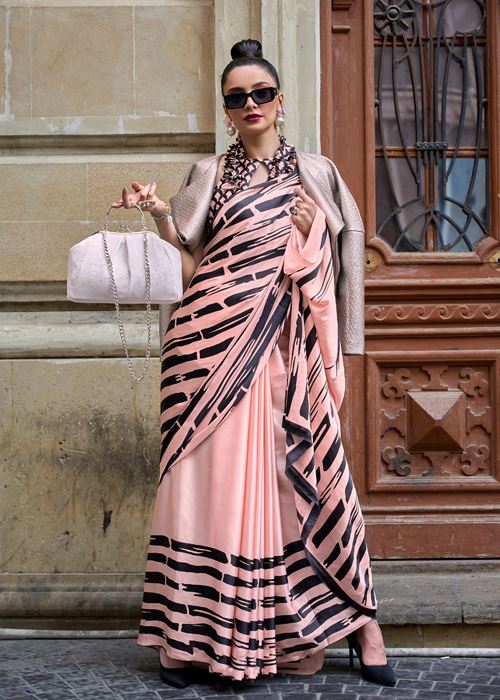 Baby Pink Satin Crepe Saree With Digital Printed Work