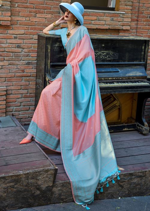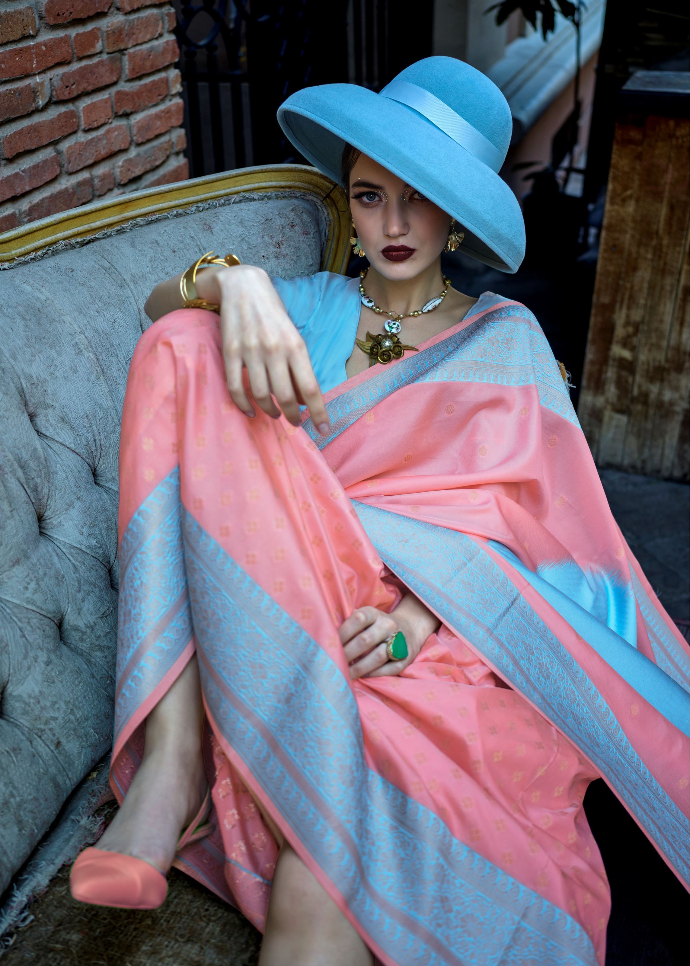Baby Pink Soft Silk Saree with Jacquard Woven Work