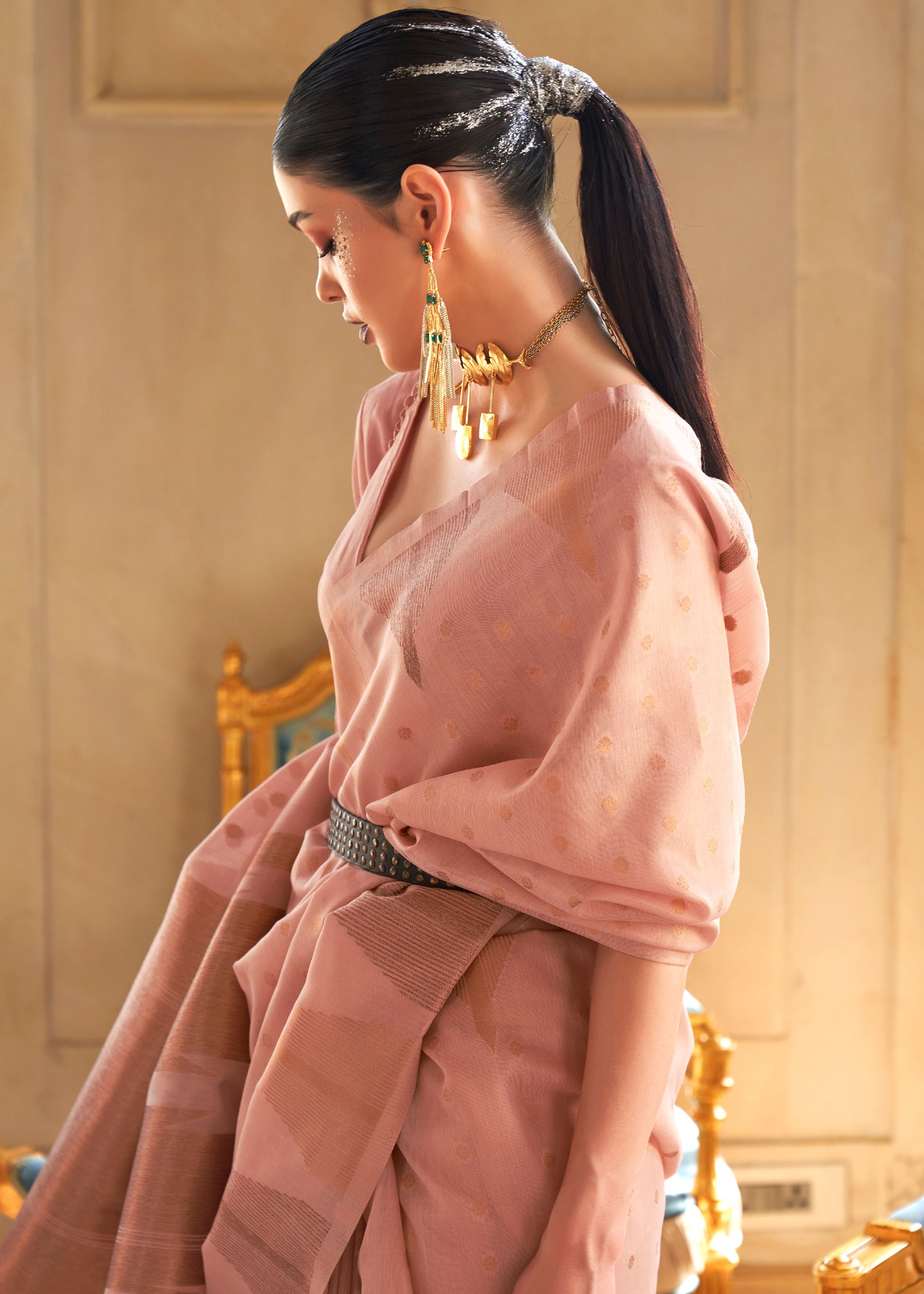 Baby Pink Tissue Saree With Jacquard Woven Work