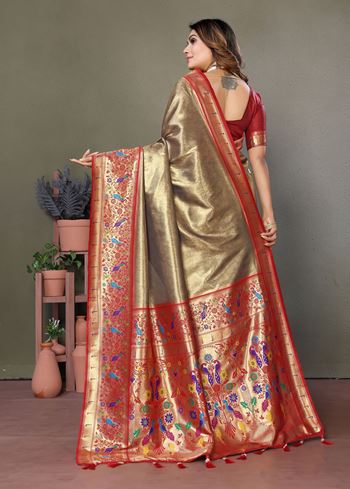 Beautiful Brown Banarasi Tissue Silk Partywear Saree