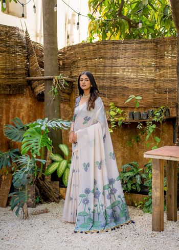 Beautiful Floral Weaving Designer Off White Muga Cotton Rich Looks Saree