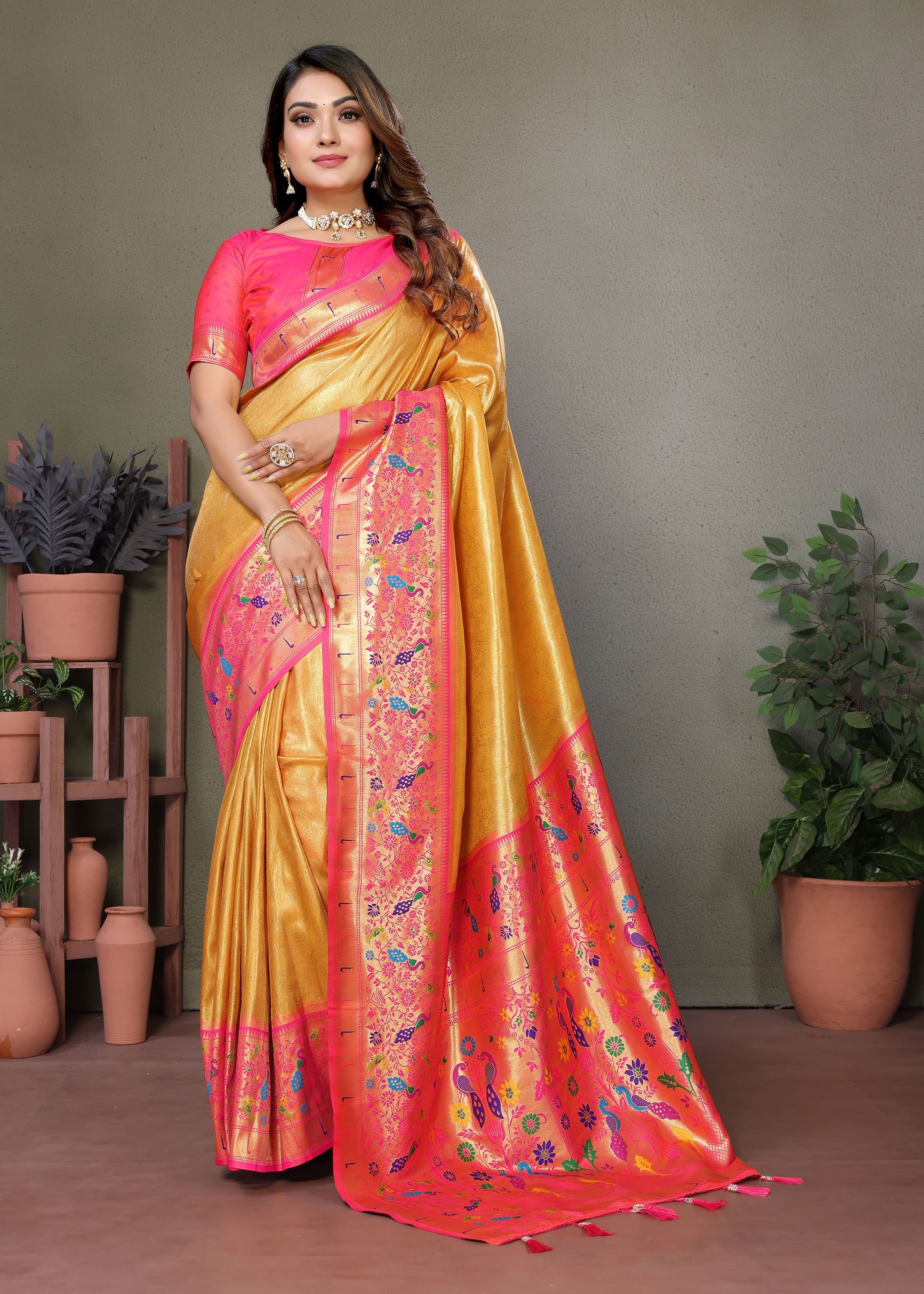 Beautiful Mustard Banarasi Tissue Silk Partywear Saree