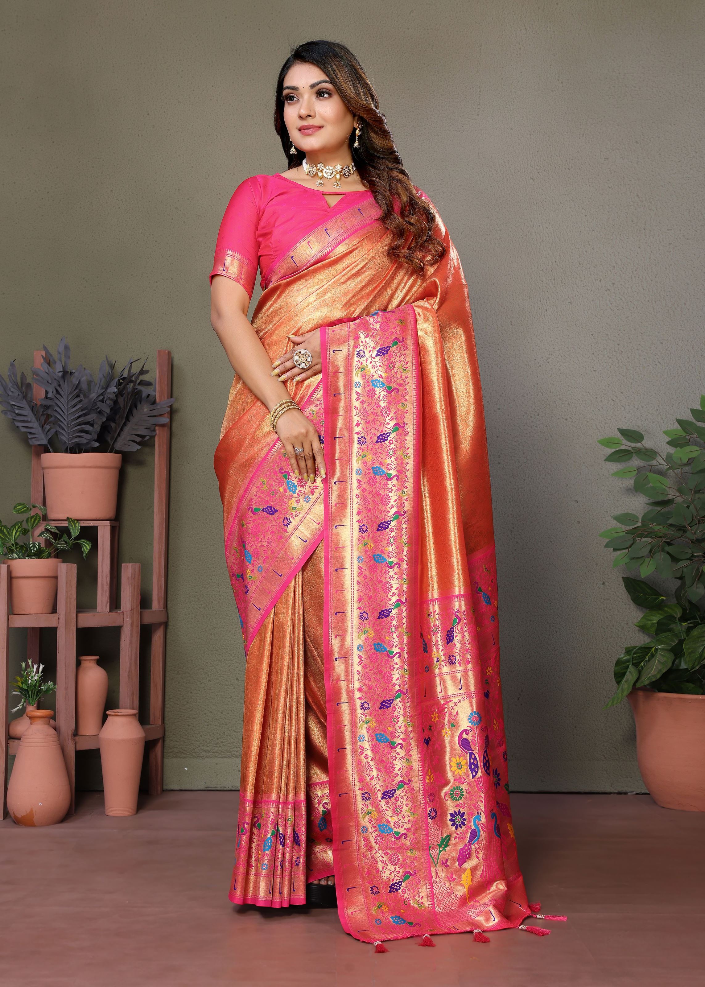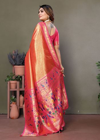 Beautiful Orange Banarasi Tissue Silk Partywear Saree
