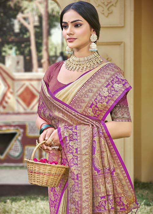 Beige Color Banarasi Silk Festive Wear Weaving Saree