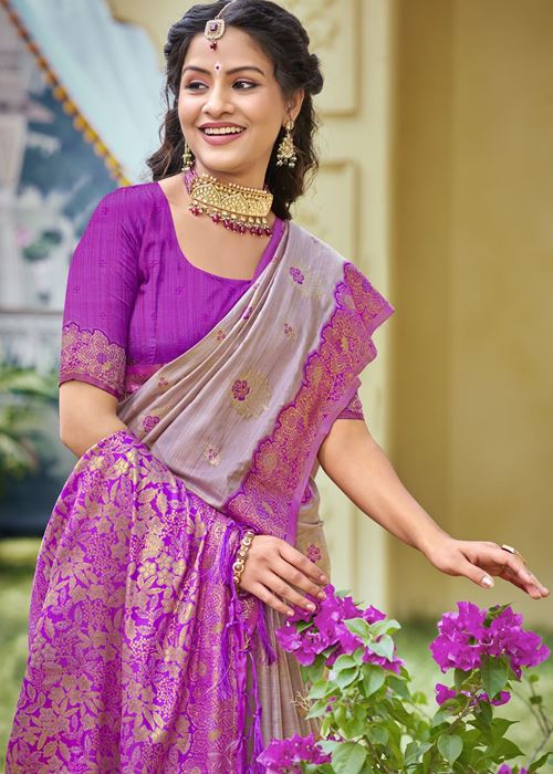 Beige Color Classic Banarasi Silk Saree