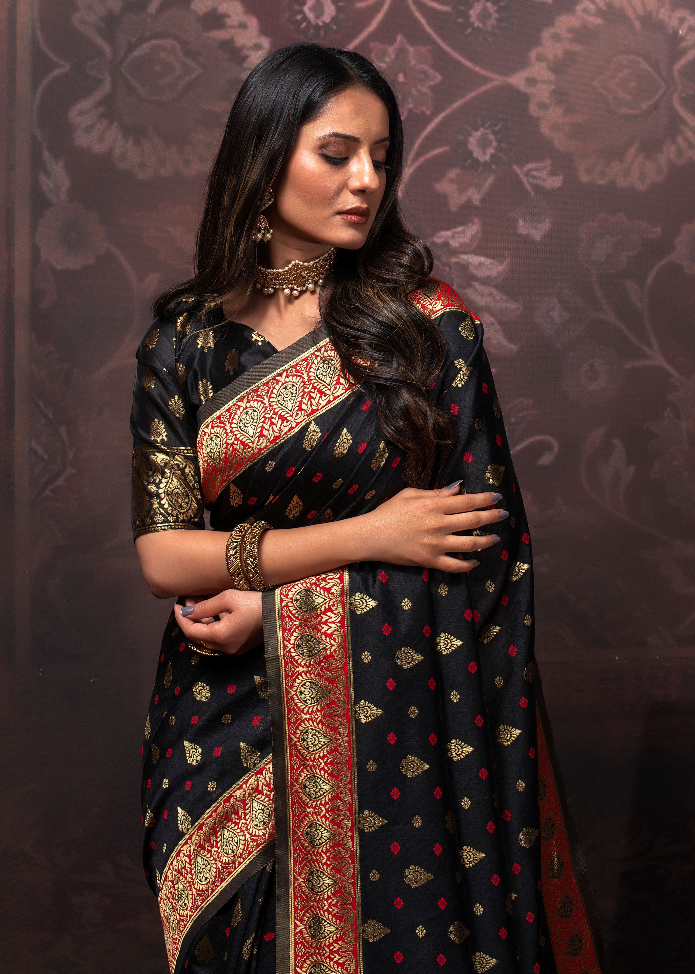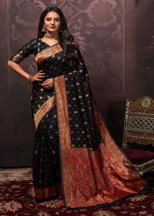 Black Banarasi Silk Saree with Jacquard Woven Work