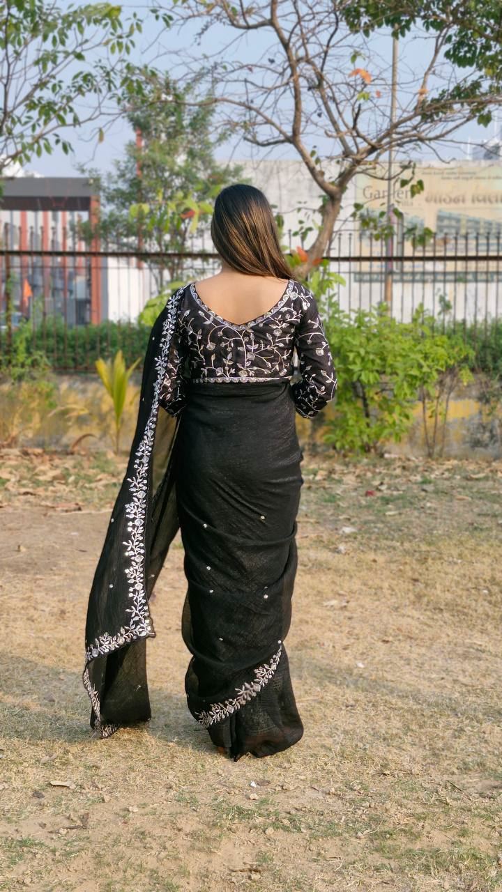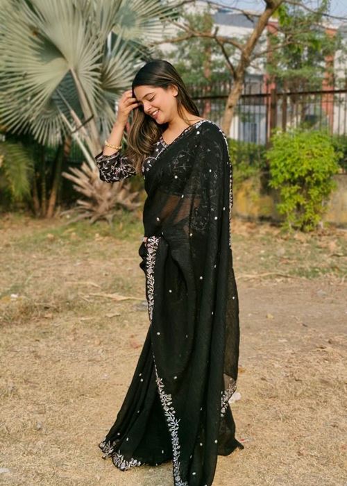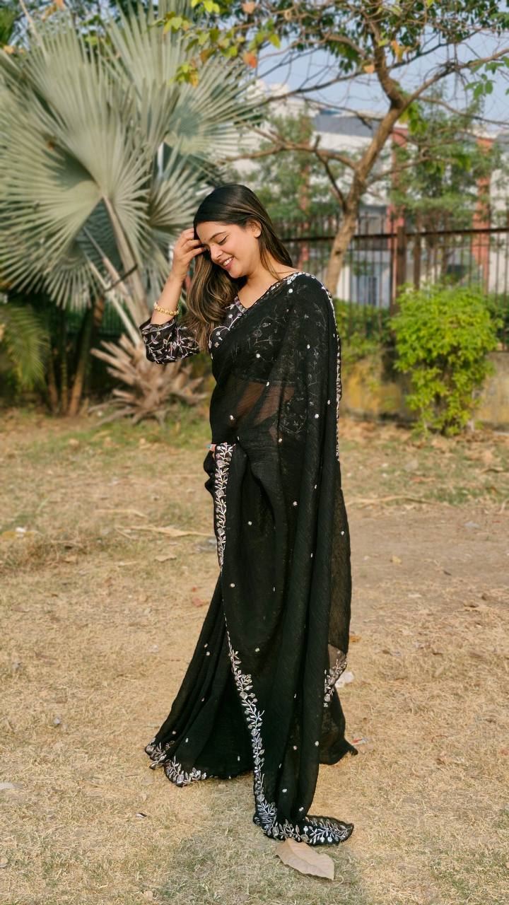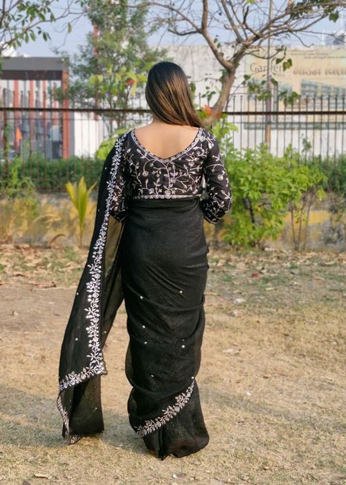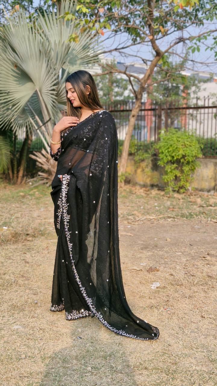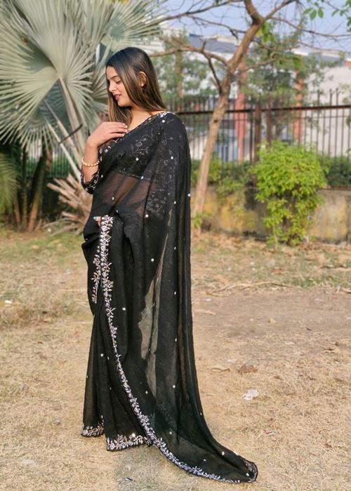 Black Colour Candy Crush Silk Embroidery Work Saree