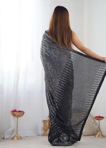 Black Designer Bollywood Looks Georgette Fabric Saree For Party Looks