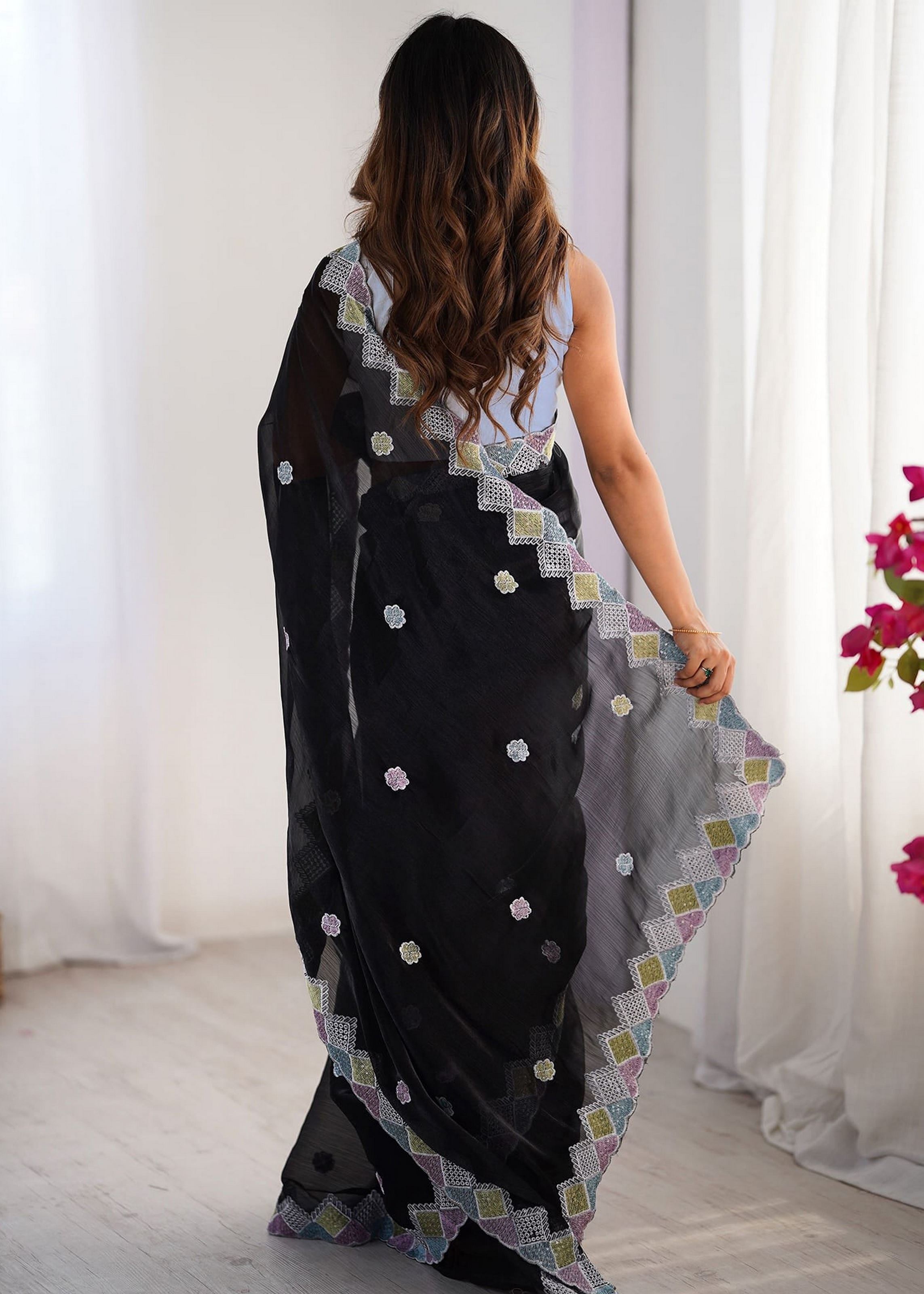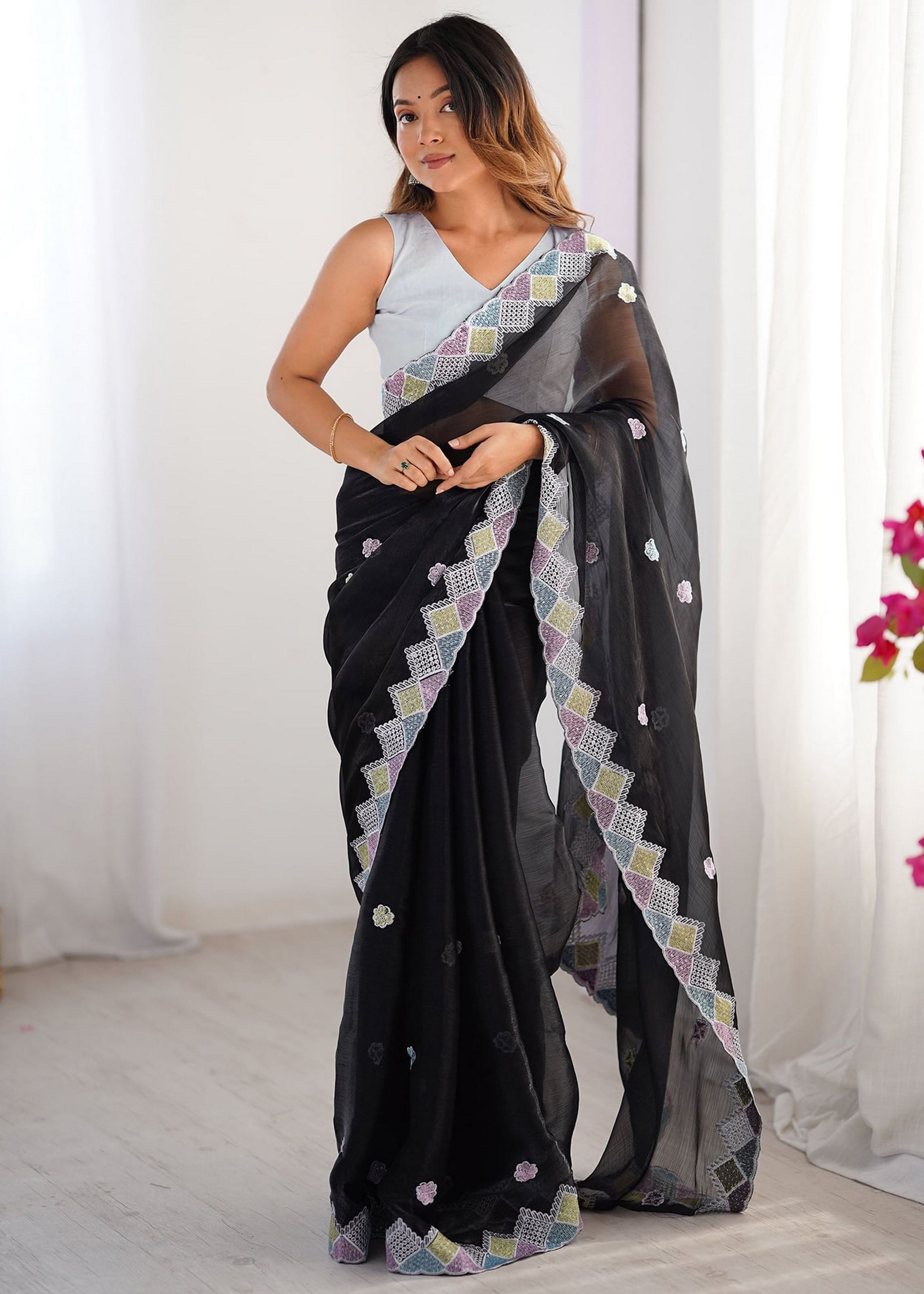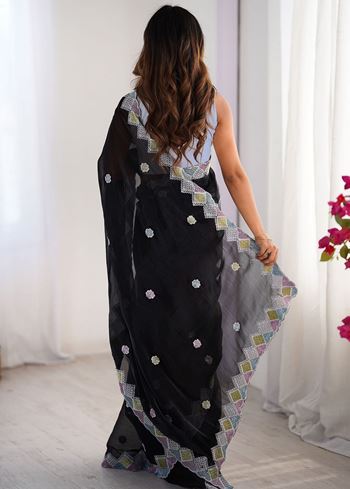 Black Fancy Embroidery Work Jimmy Choo Girlie Bollywood Saree
