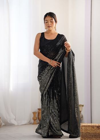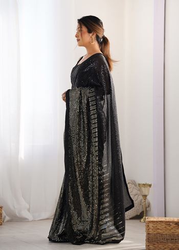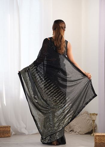Black Georgette Designer Sequins Embroidery Work Bollywood Style Partywear Saree
