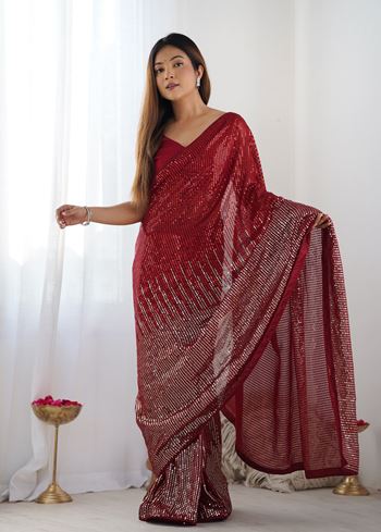 Turn heads with the Black Georgette Designer Saree from Aethnofit Fashions, perfect for those seeking Bollywood-style glamour. Made from premium georgette fabric, this saree is adorned with intricate sequins embroidery that adds a sparkling touch to any festive or party occasion. The matching art silk blouse, delicately embroidered, completes the look with sophistication and elegance.