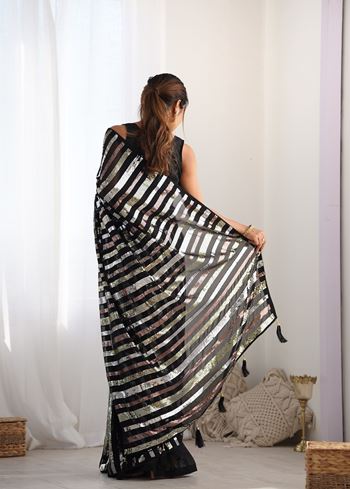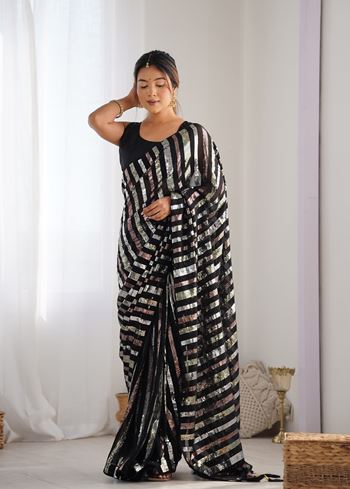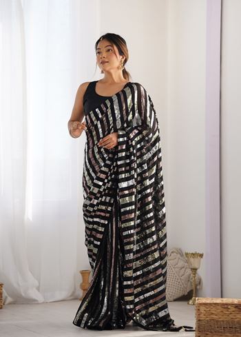 Black Georgette Fabric Glamorous Bollywood Party Sequins Saree