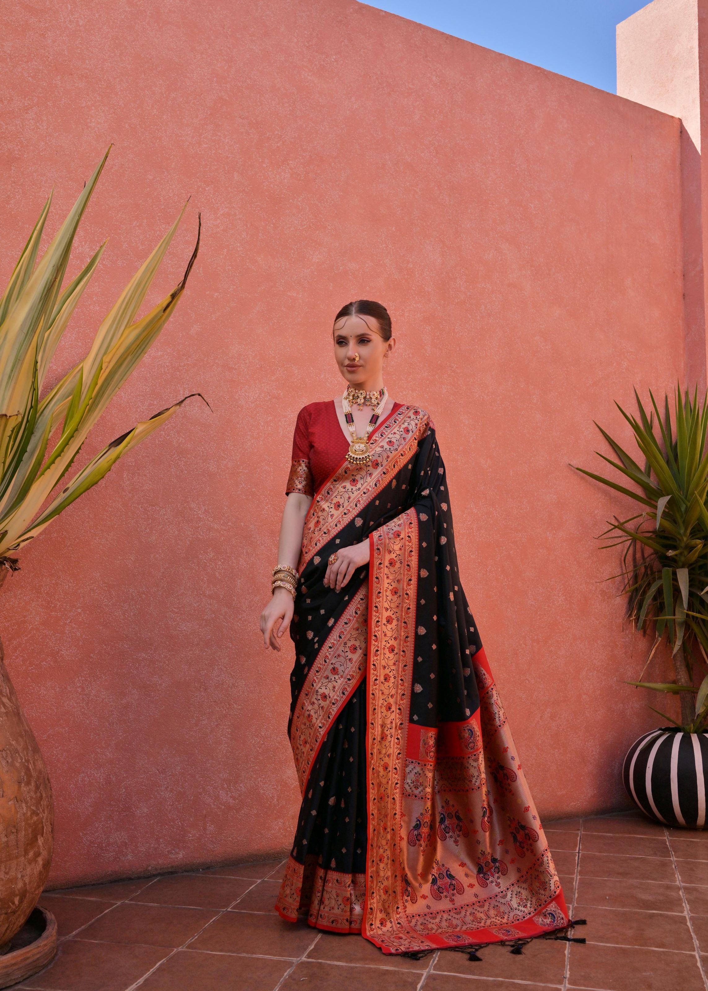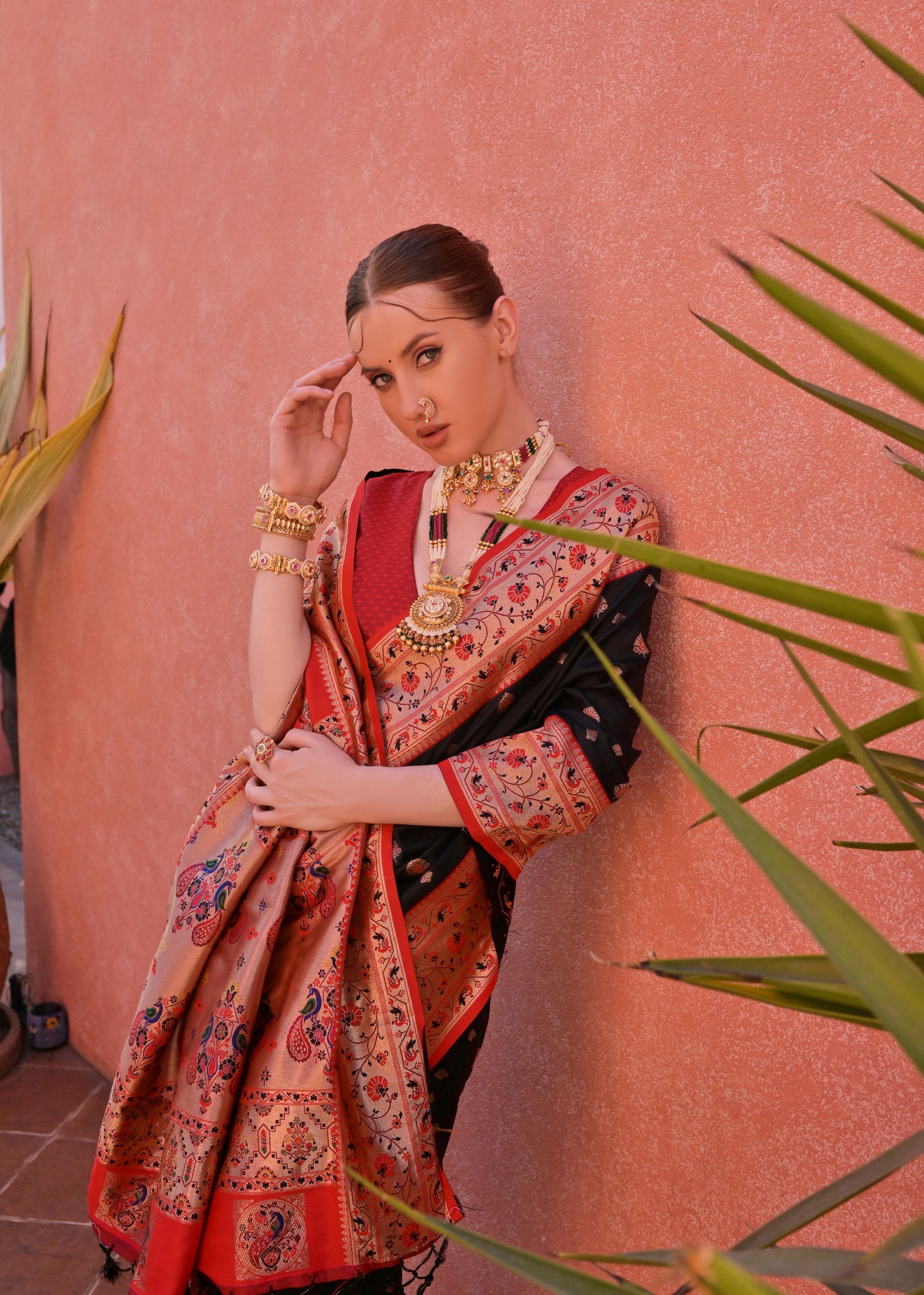 Black Paithani Silk Saree with Paithani Pallu and Zari Butti