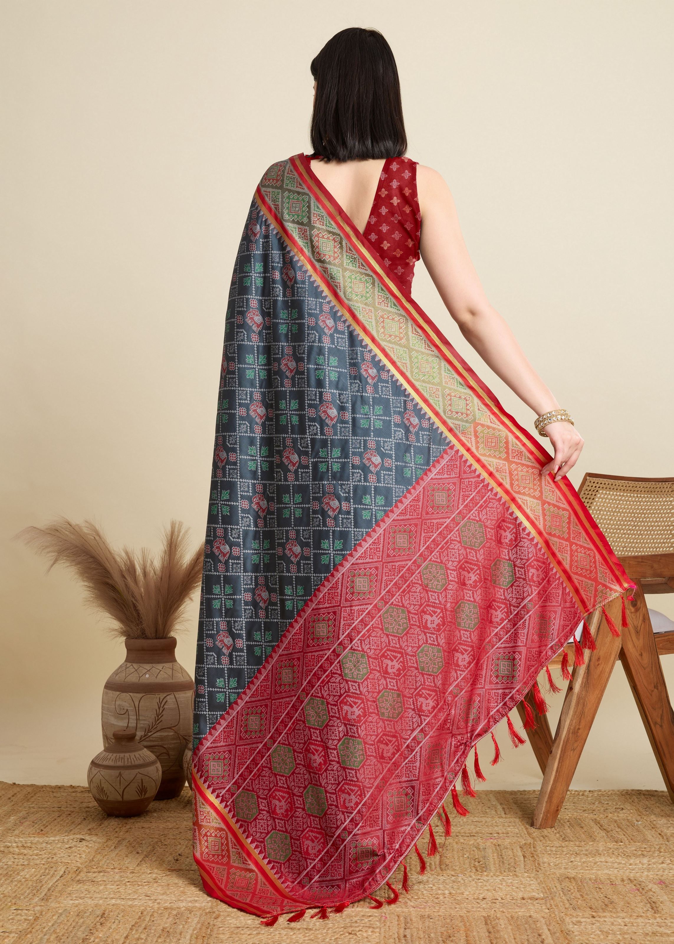 Black Patola Silk Woven Meenakari Designer Partywear Saree