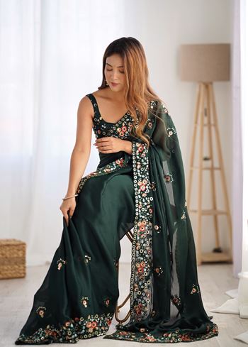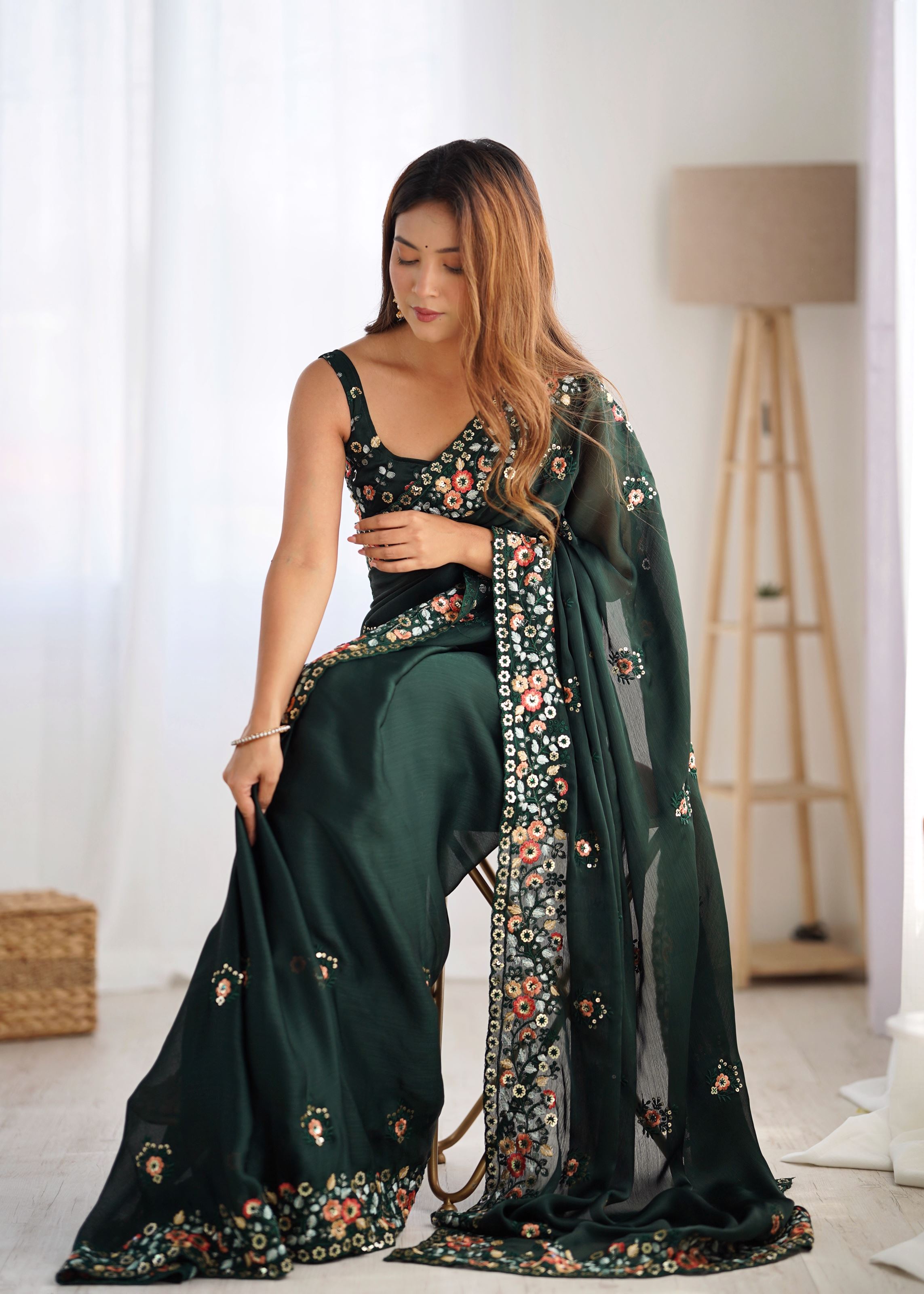 Black Satin Chiffon Fabric Designer Thread And Sequins Work Partywear Saree