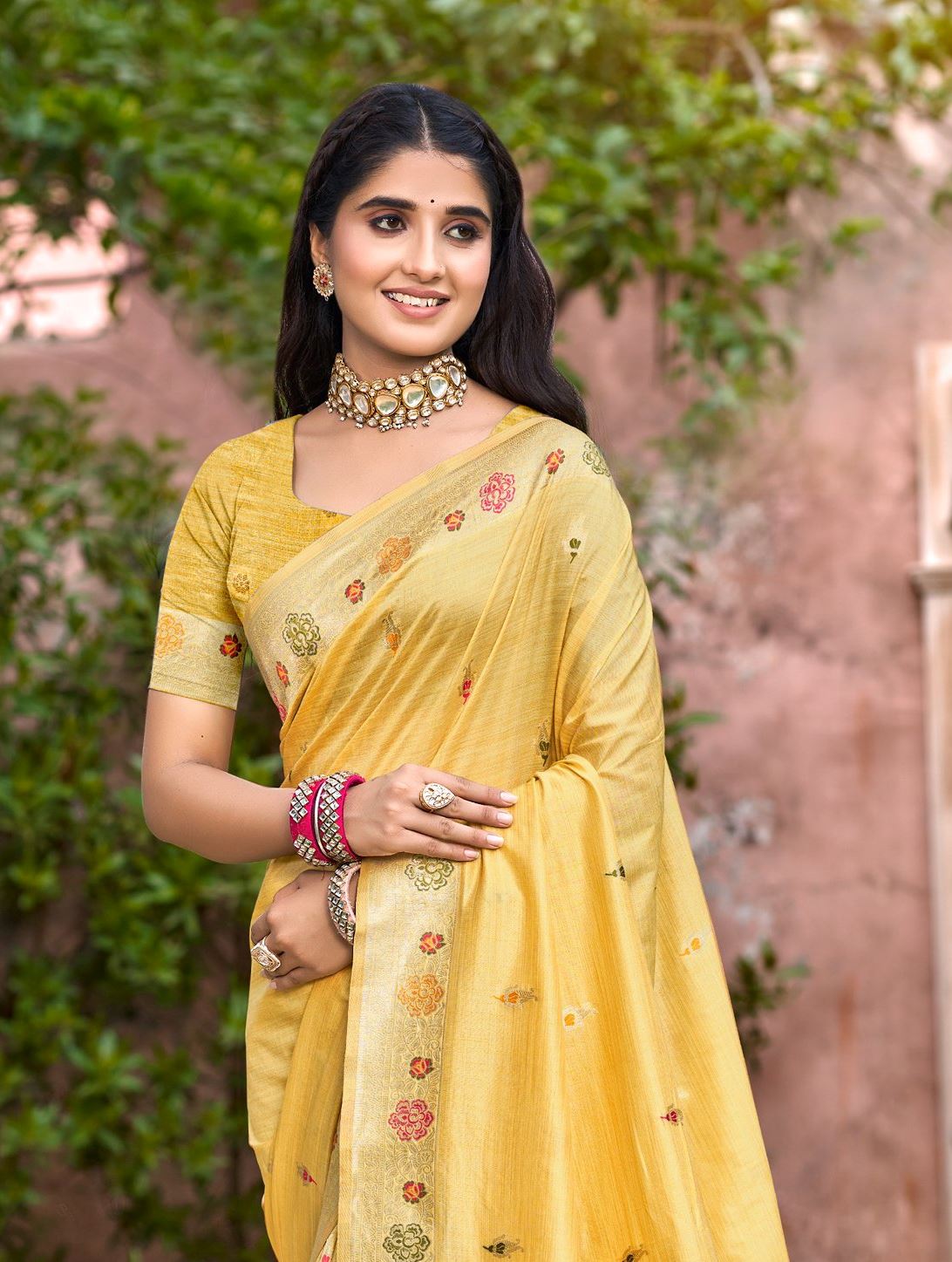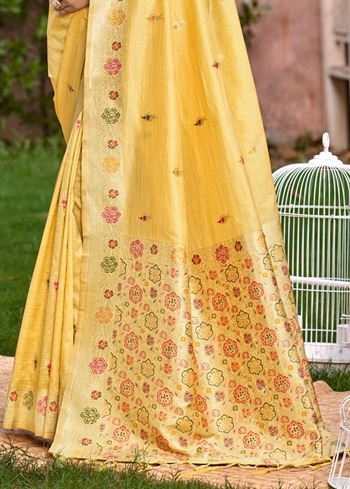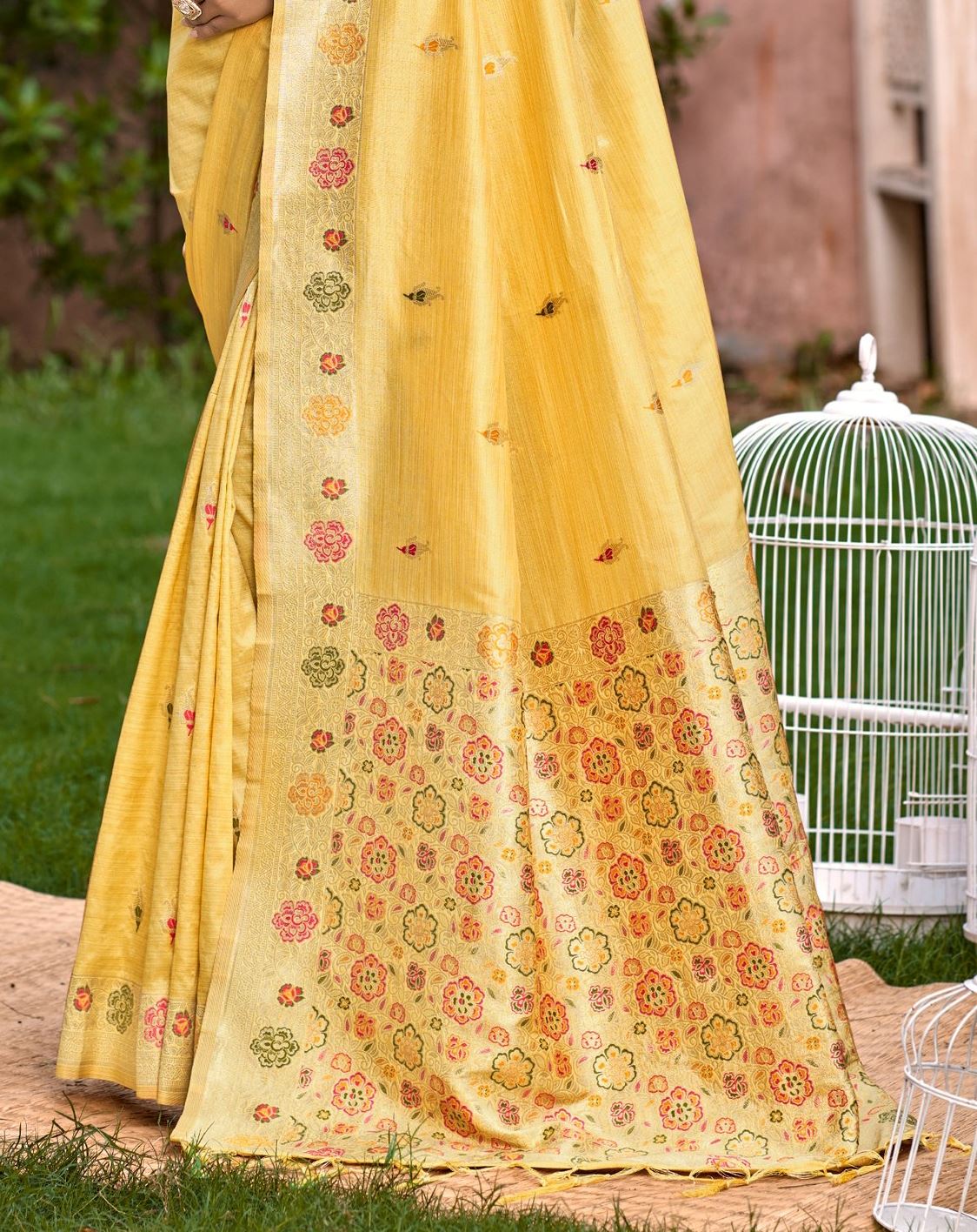 Blooming Yellow Assam Silk Meenakari Festival Saree
