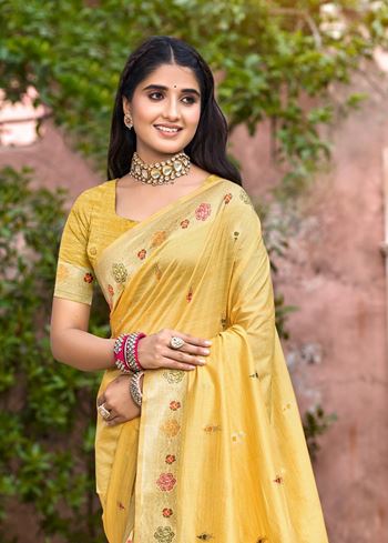 Radiate joy and elegance with the Blooming Yellow Assam Silk Meenakari Festival Saree, a vibrant addition to your festive wardrobe. Crafted from premium Assam silk, this saree offers a smooth, luxurious texture that drapes effortlessly, ensuring both comfort and sophistication. The bright yellow hue exudes warmth and positivity, making it ideal for weddings, festivals, and special cultural celebrations.
