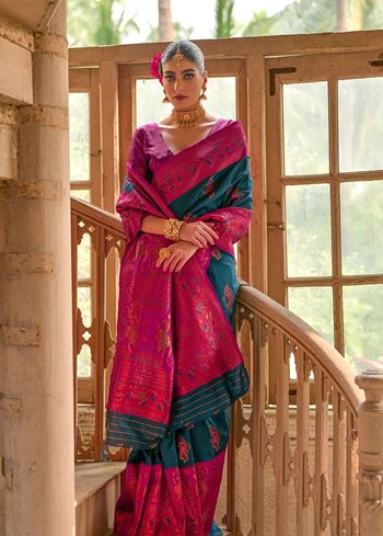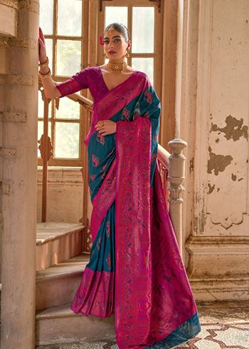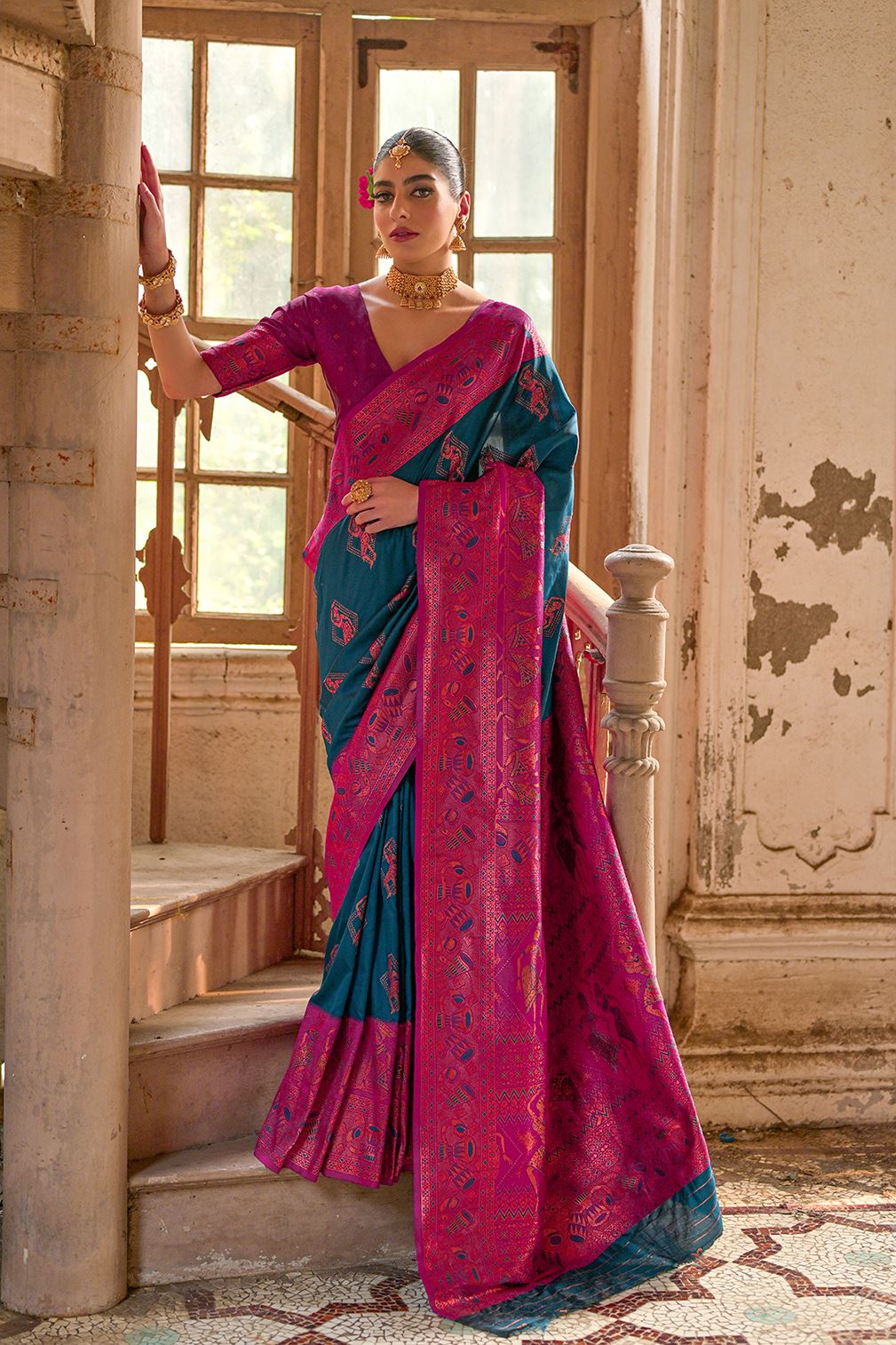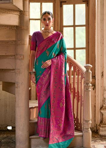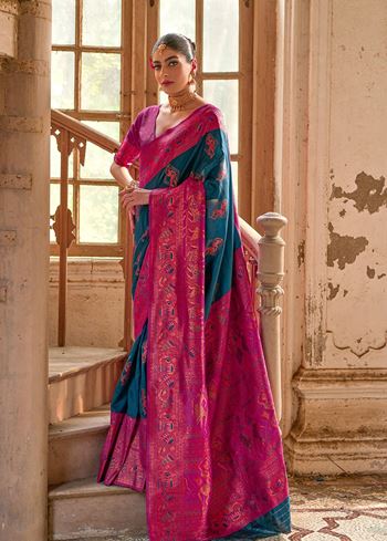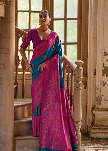 Blue Banarasi Silk Saree with Kalamkari Zari Design