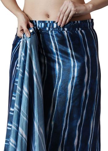 This ready-to-wear saree comes with a matching art silk blouse, offering a seamless and coordinated look. Its lightweight design ensures ease of movement without compromising elegance, making it ideal for long celebrations and special occasions. The stunning blue hue adds a regal feel, ensuring you make a statement wherever you go.