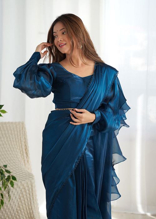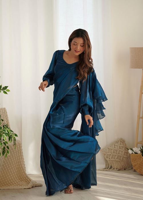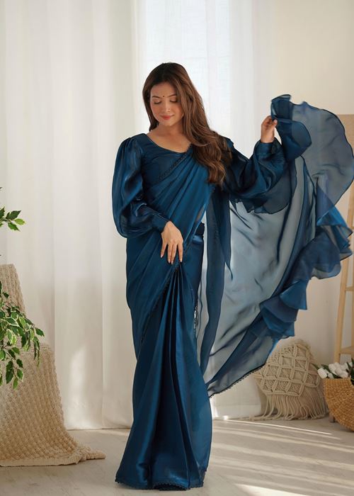 Blue Colour Zimichhu Silk Ready To Wear Saree