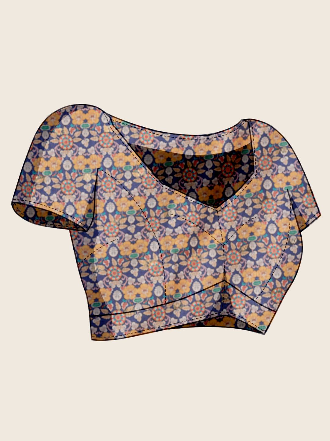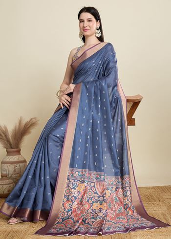This saree comes with a matching blended cotton blouse piece in blue, making it easy to create a coordinated ensemble. The lightweight nature of the fabric ensures effortless draping and a graceful fall, ideal for ceremonial functions, festive events, and special celebrations. Whether styled with traditional jewelry for a classic appearance or minimal accessories for a contemporary vibe, this saree is versatile enough for multiple occasions.