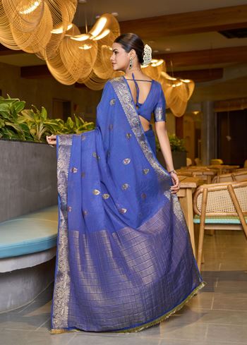 Pair this saree with dazzling jewelry, statement earrings, and stylish footwear to create a show-stopping ethnic outfit. Whether you are attending a festive gathering, a wedding ceremony, or a special party, this saree promises to make you the center of attraction.Add this Blue Woven Art Silk Saree to your collection and experience timeless elegance with every drape.