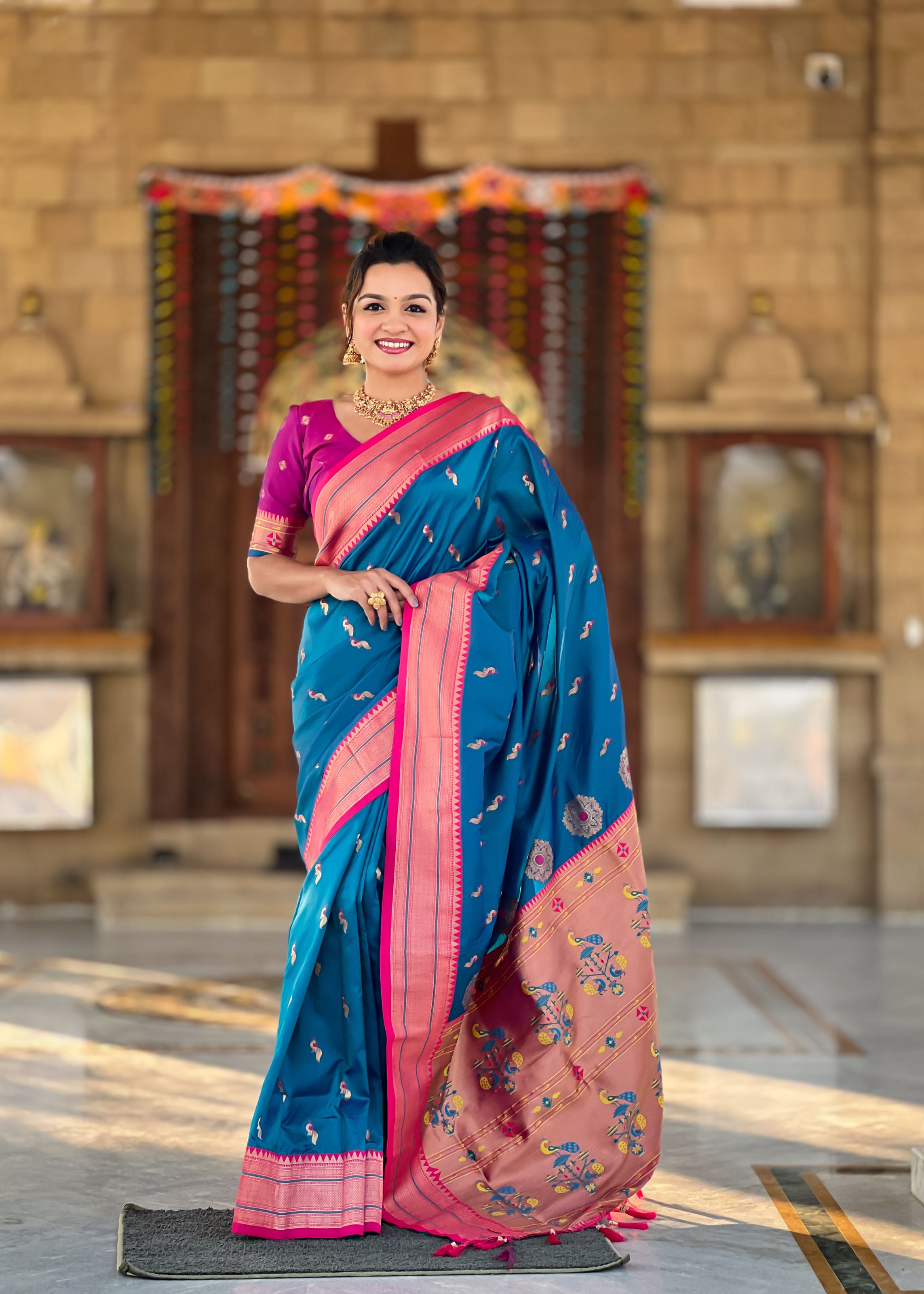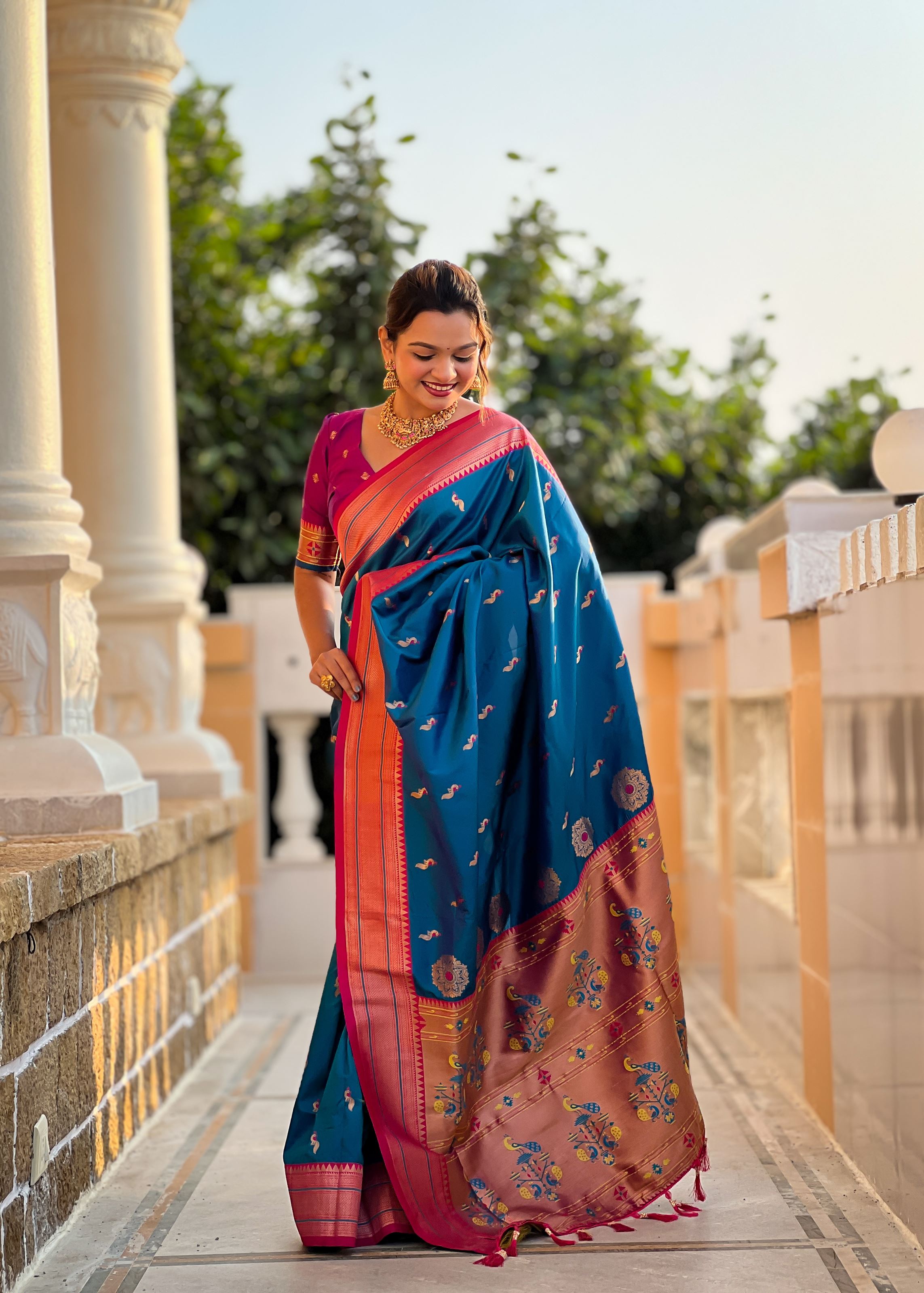 Blue Ethnic Paithani Silk Woven Jacquard Designer Ceremonial Fancy Saree
