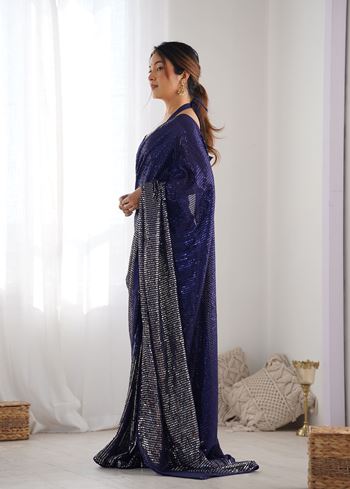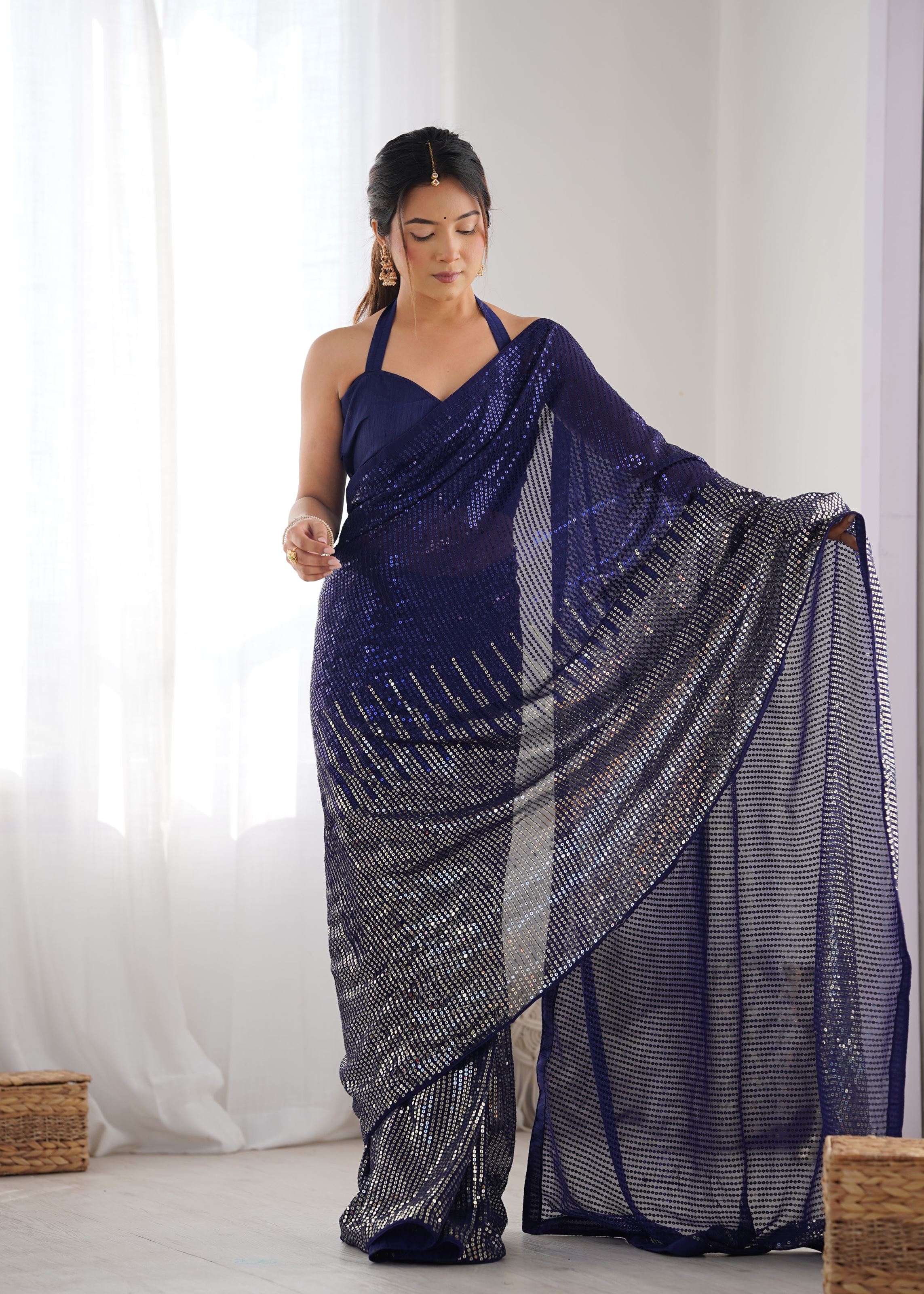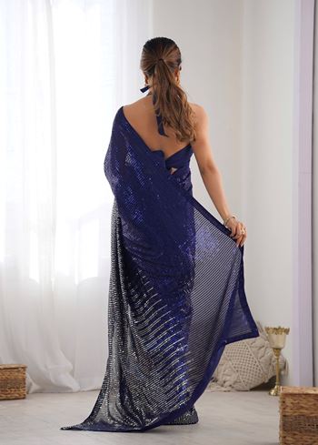 Blue Georgette Designer Sequins Embroidery Work Bollywood Style Partywear Saree