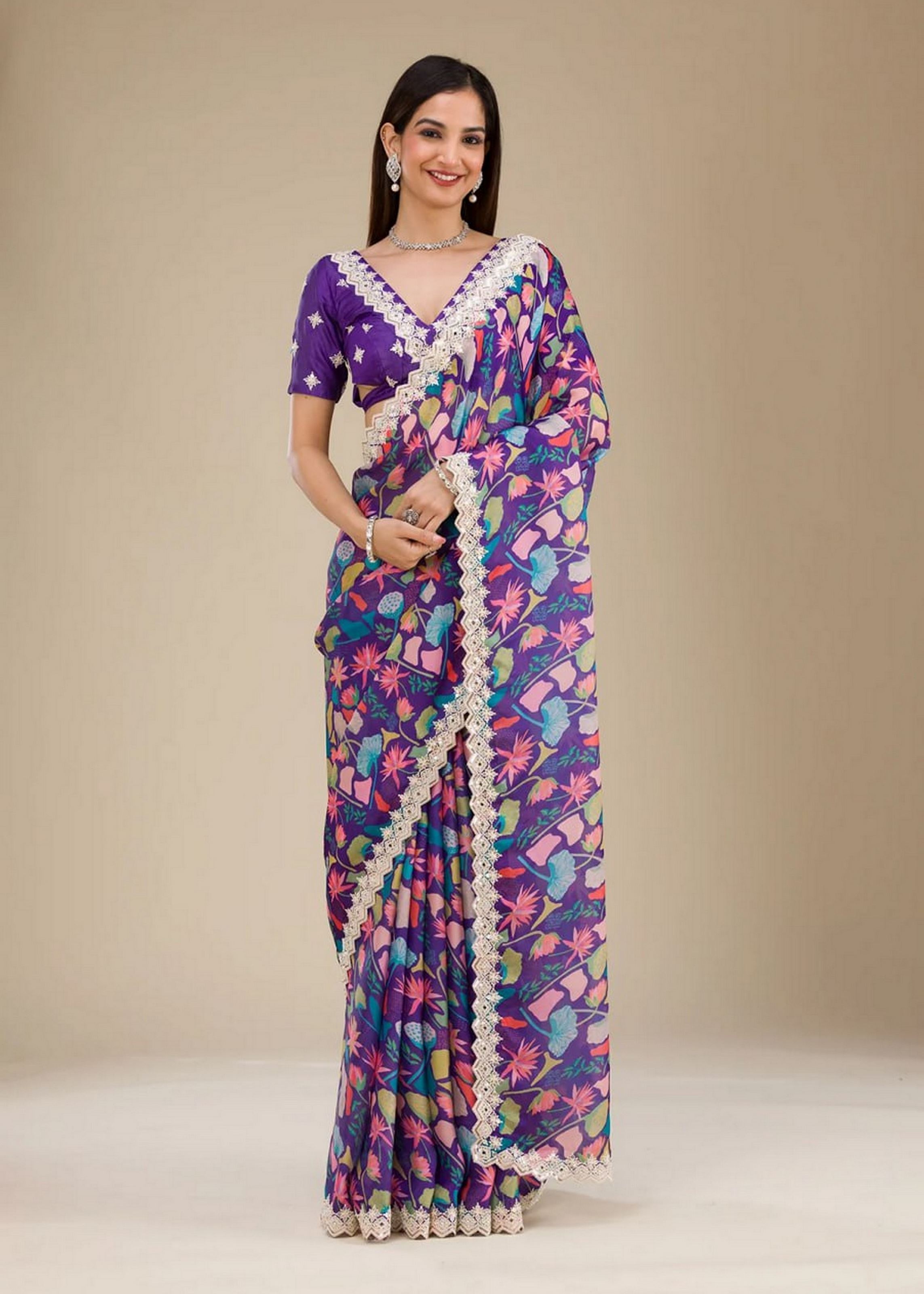The saree features elegant printed designs that blend contemporary style with traditional appeal, ensuring you look effortlessly chic. Paired with a matching art silk blouse, it creates a coordinated and polished look suitable for any event. Its breathable fabric ensures comfort while allowing graceful movement throughout long celebrations.