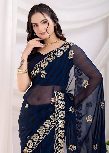Blue Georgette Saree with Digital print with sequins Work